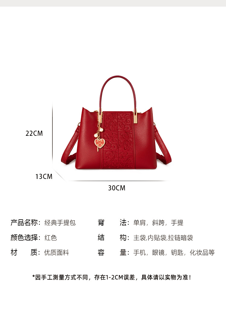 어머니의 날 선물 국가 스타일 수 놓은 빨간 가방 대용량 핸드백 신부 결혼식 가방 중년 여성 어머니스토어 가기