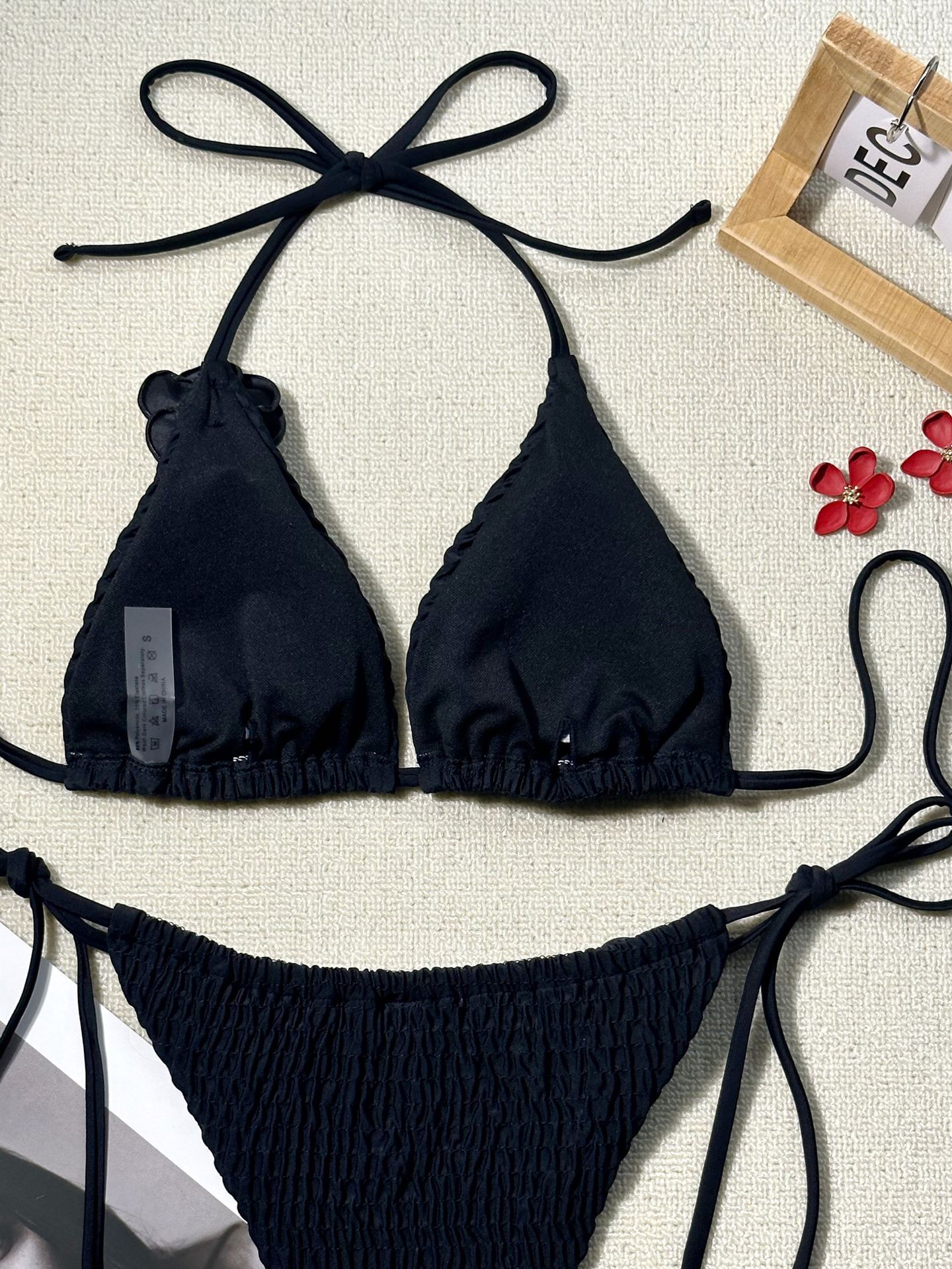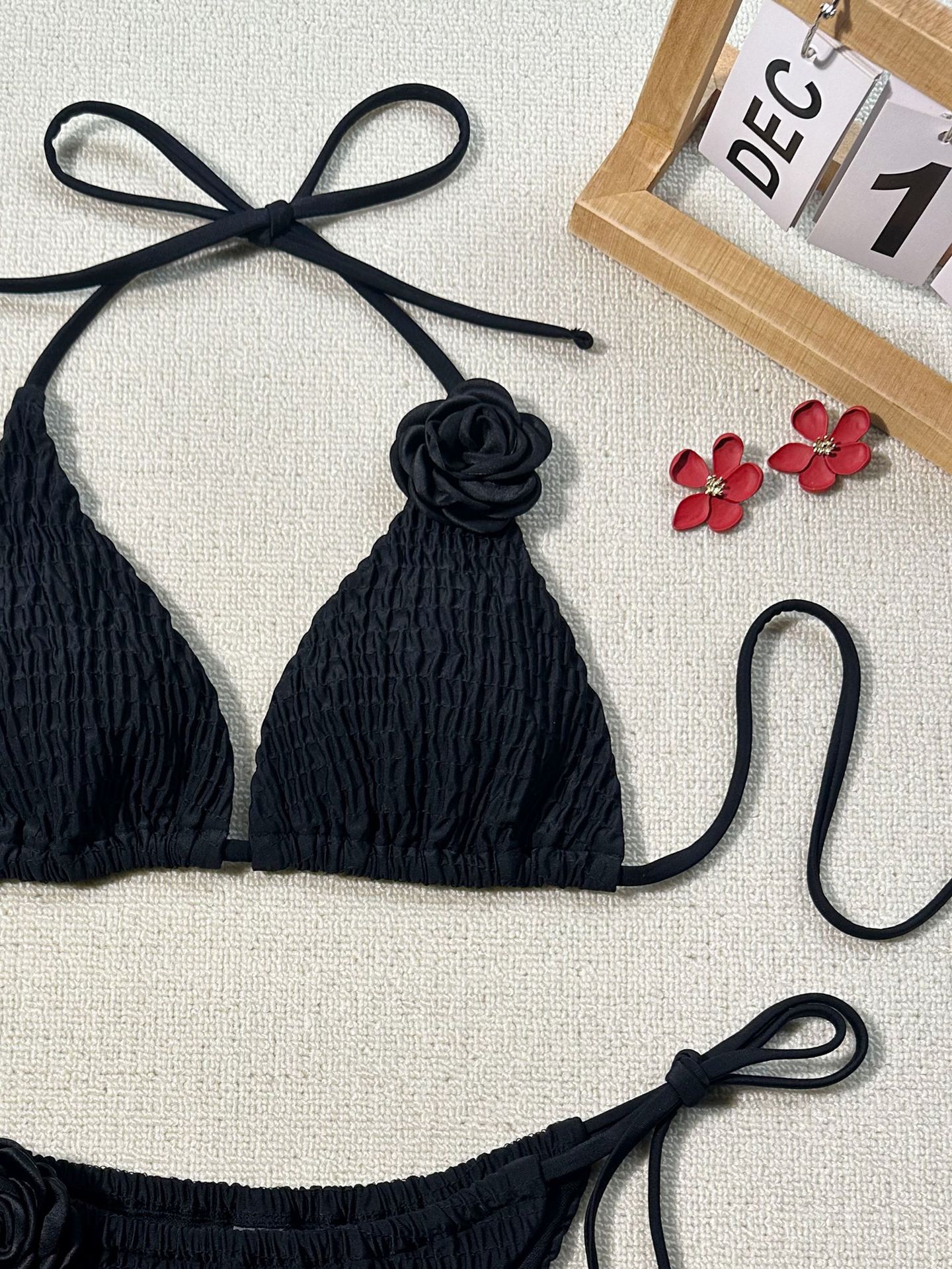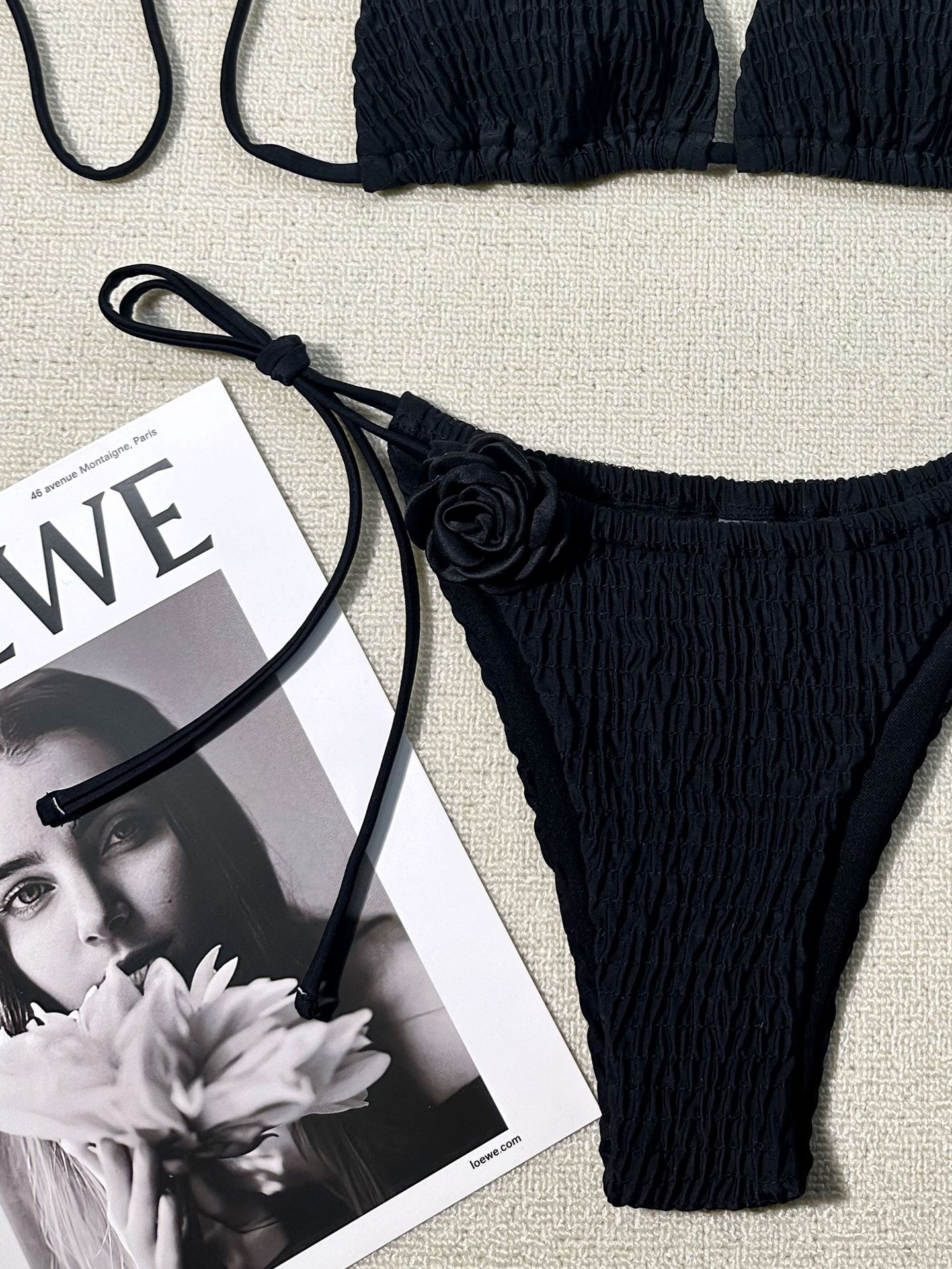 국경 2024 새로운 3D 꽃 비키니 삼각형 컵 섹시한 비키니 단색 여성 수영복