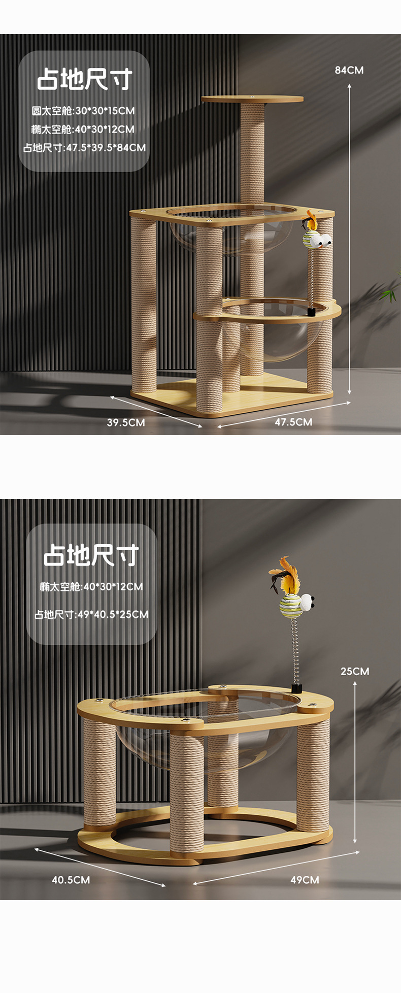 고양이 등반 프레임, 고양이 둥지, 일체형 확대 공간 캡슐, 다층 고양이 프레임, 사이잘 기둥, 긁힘 방지 및 부스러기 방지, 애완 동물 용품