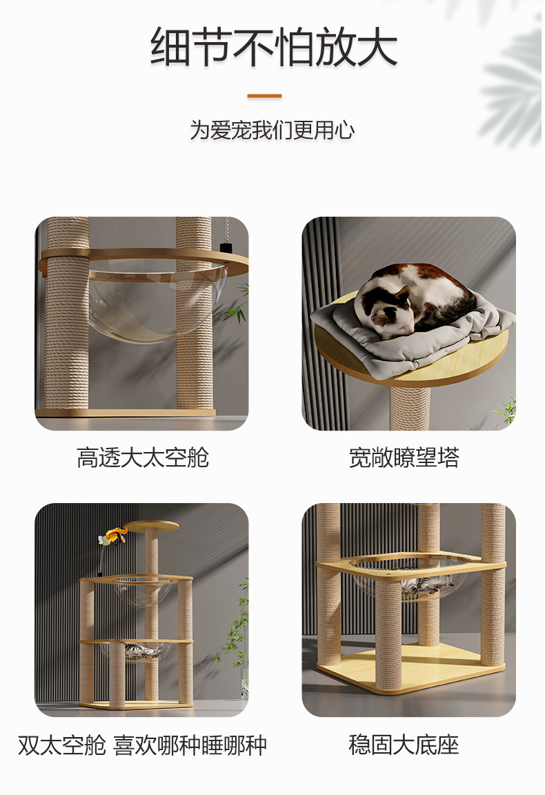 고양이 등반 프레임, 고양이 둥지, 일체형 확대 공간 캡슐, 다층 고양이 프레임, 사이잘 기둥, 긁힘 방지 및 부스러기 방지, 애완 동물 용품스토어 가기