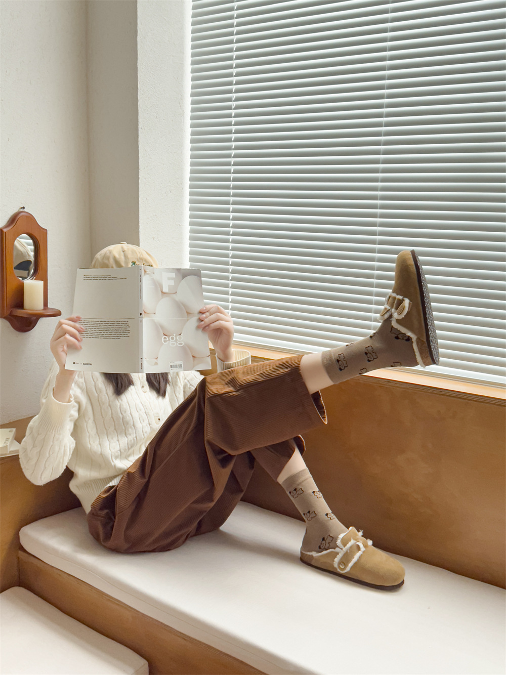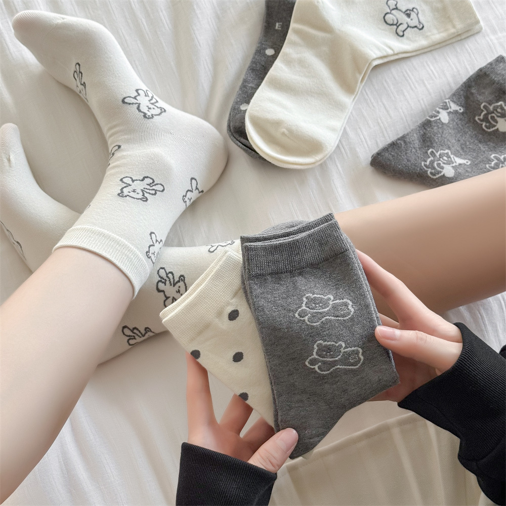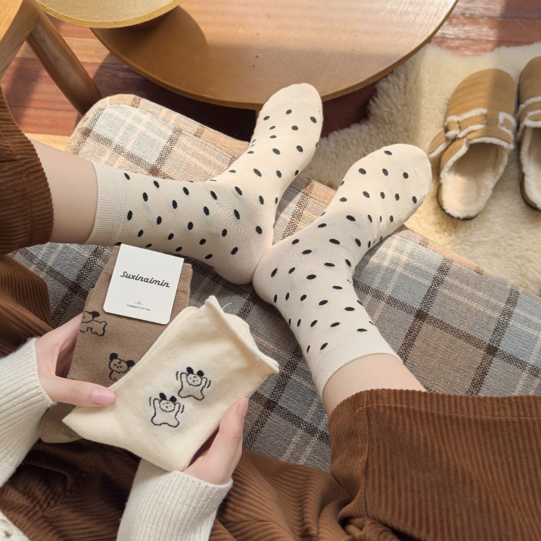 가을과 겨울 만화 개 귀여운 중간 송아지 양말 소녀 모든 경기 유행 양말 Maillard는 양말 폴카 도트 파일 양말을 착용합니다.스토어 가기