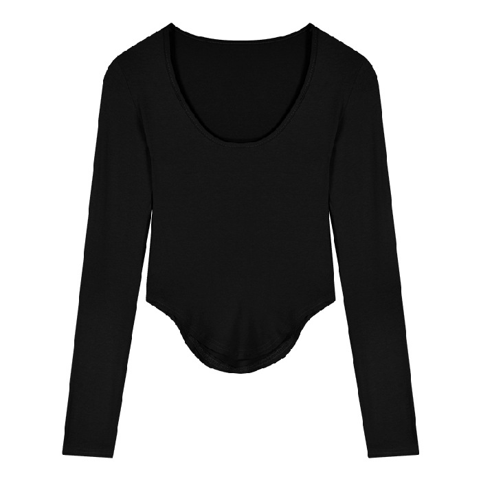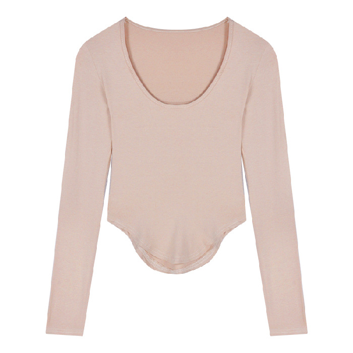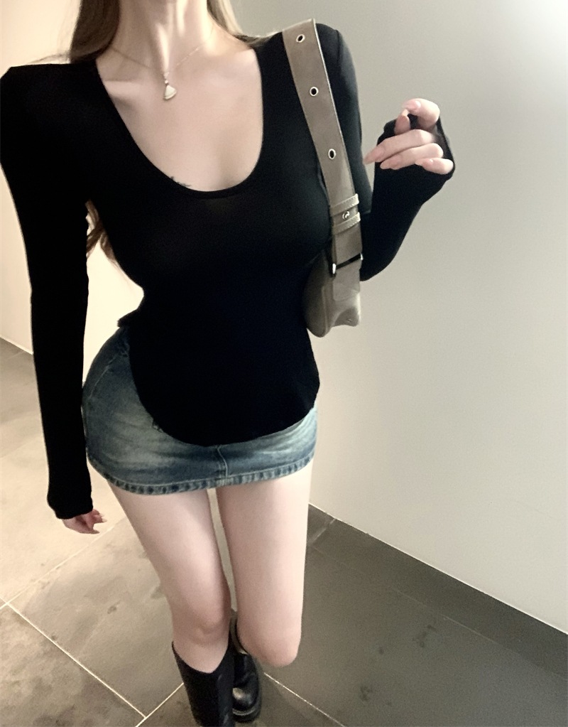 섹시한 퓨어 스파이스 걸 U 칼라 불규칙한 티셔츠 여성용 봄과 가을 슬림핏 긴 소매 내베이스 셔츠 탑 도매