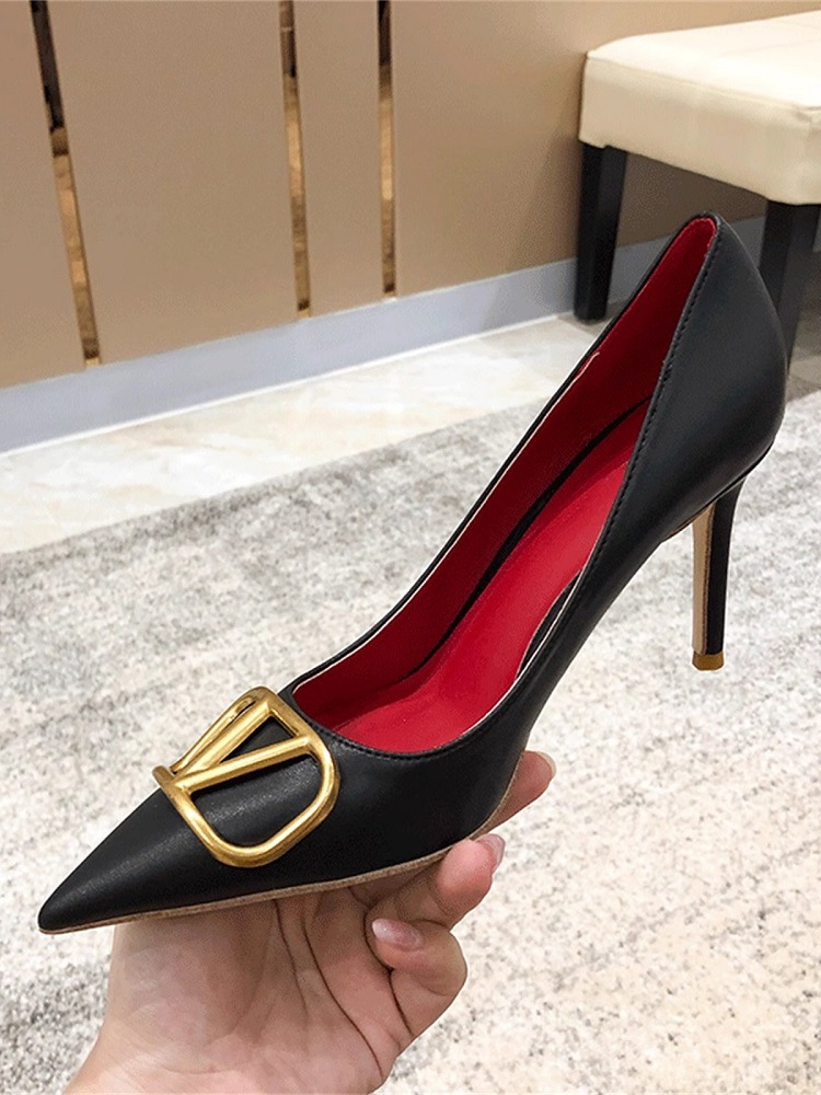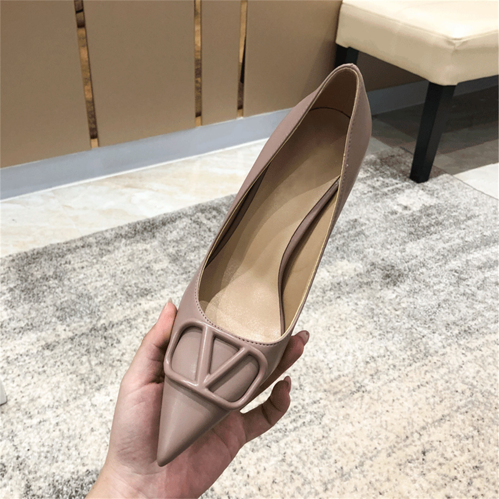 32-45 사이즈 새로운 뾰족한 스틸레토 힐 신발 여성 낮은 입 올매치 패션 V 버클 전문 작업 가죽 신발 여성스토어 가기