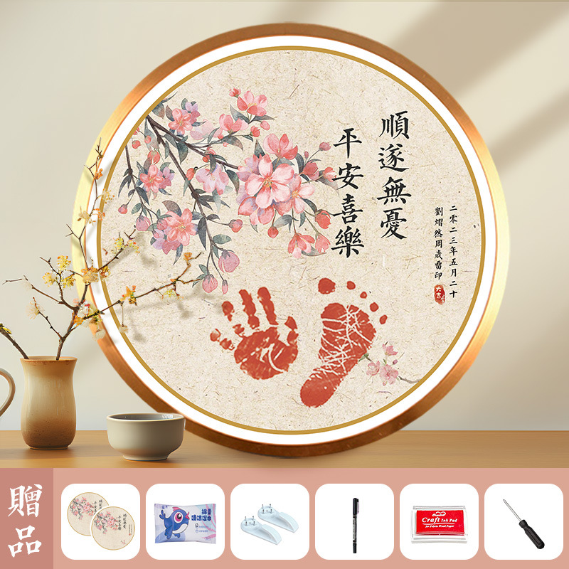 아기 년 늙은 손과 발자국 사진 프레임 어린이 년 늙은 날 기념 금속 사진 프레임 인쇄 패치 라운드 사진 프레임 레이아웃 행사스토어 가기