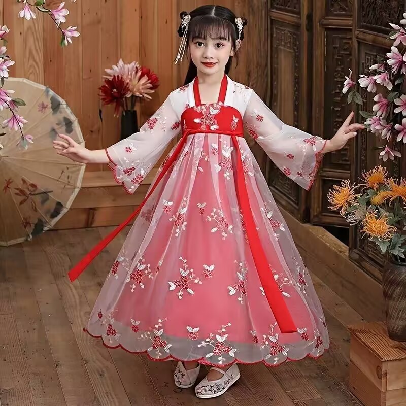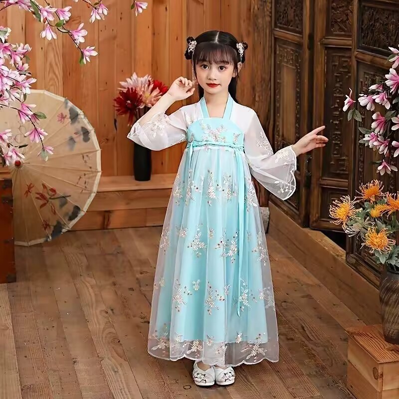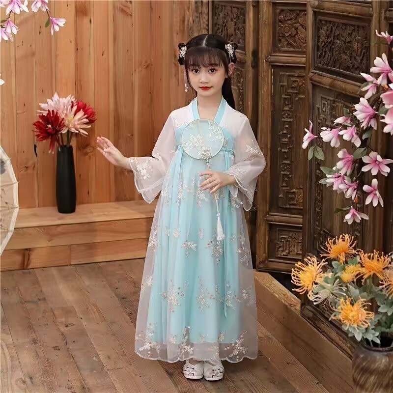 어린이 Hanfu 소녀 여름 슈퍼 요정 드레스 고대 의상 중국 스타일 어린이 정장 여성 고대 요정 드레스