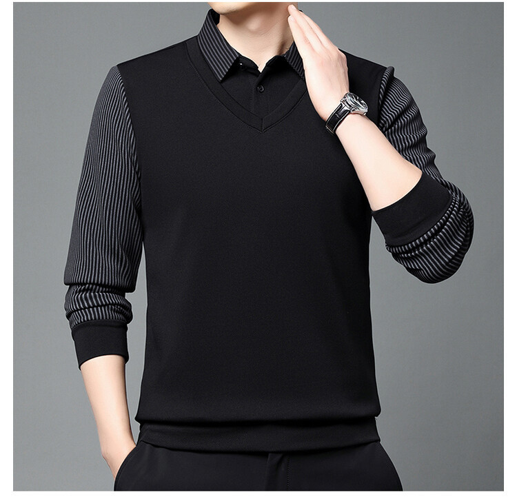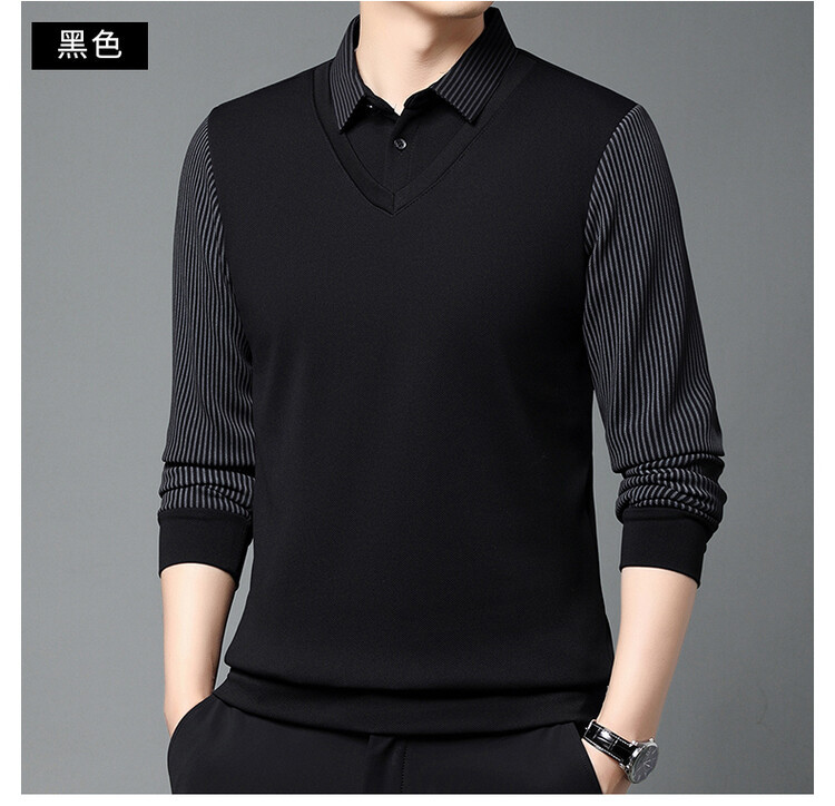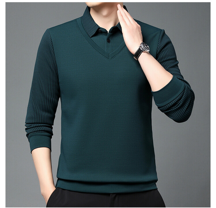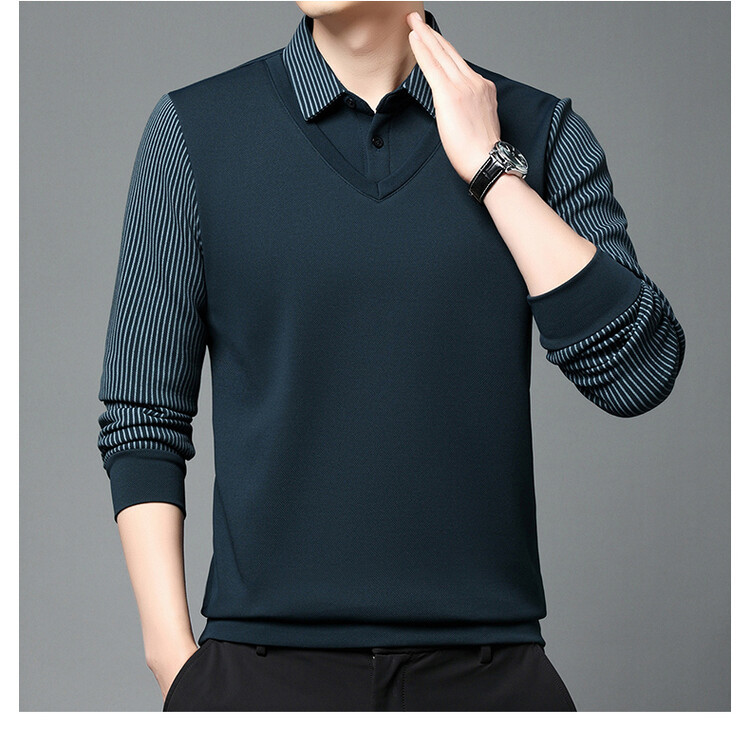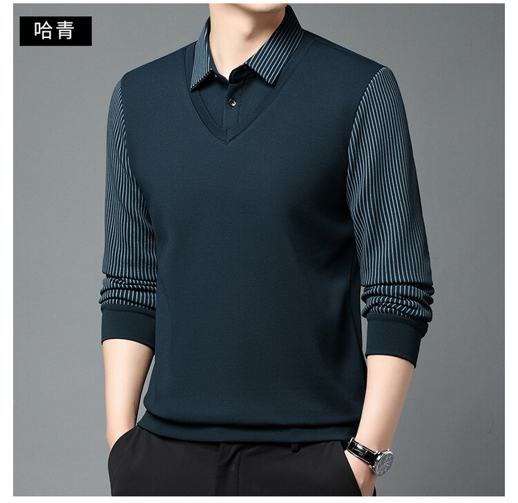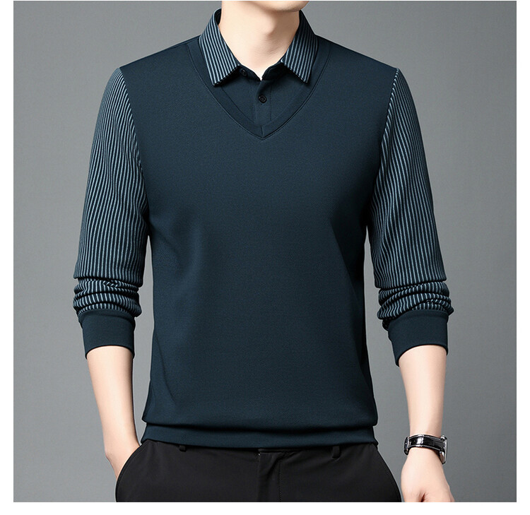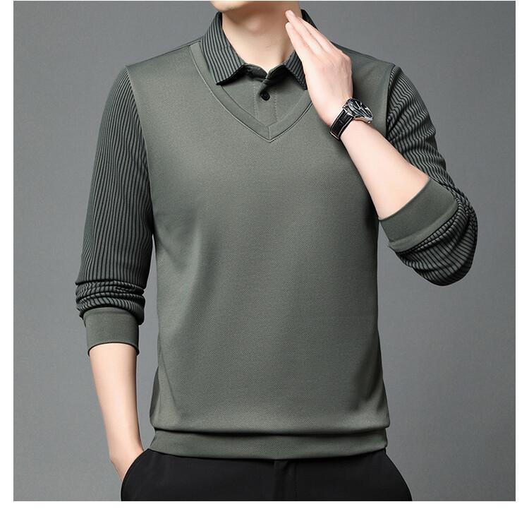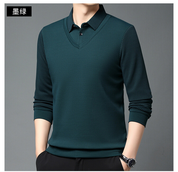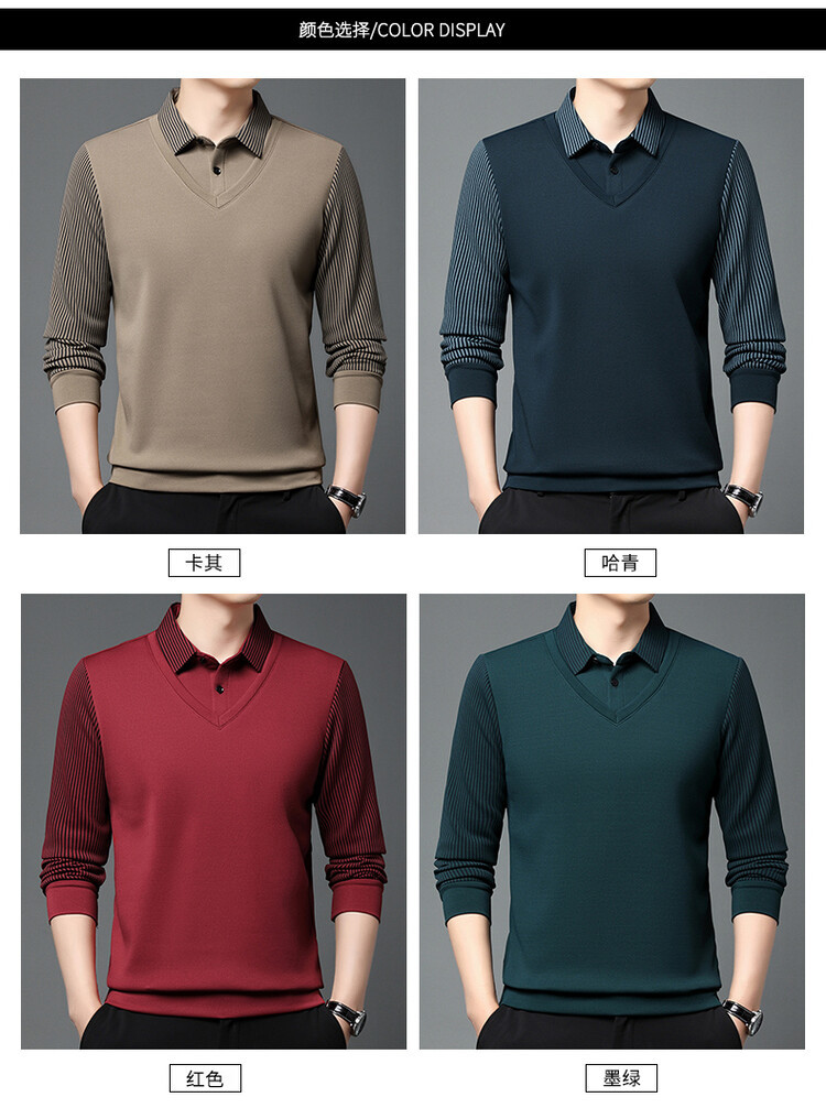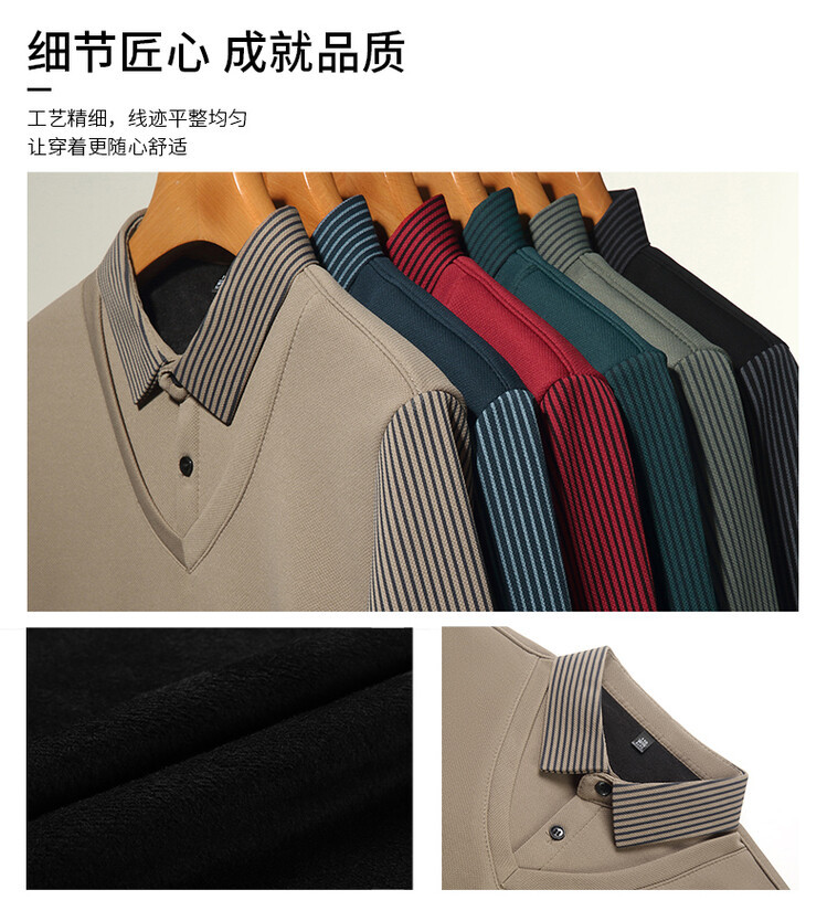2024 남성 겨울 신작 두꺼운 벨벳 투피스 긴팔 남성복 중년 패션 캐주얼 폴로 셔츠 플러스 벨벳스토어 가기