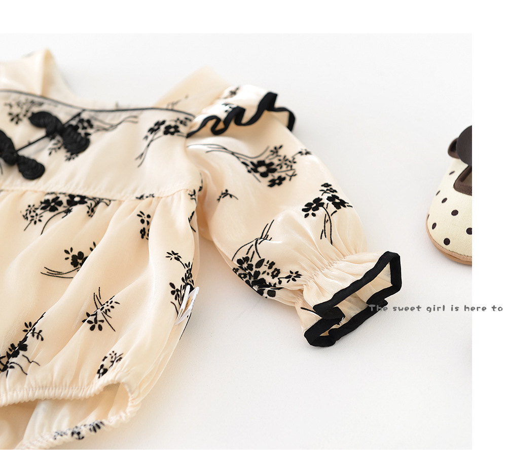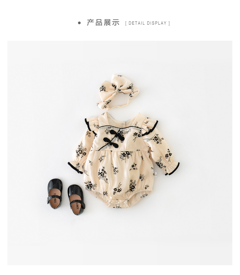 신생아 봄 점프 수트 아기 중국 스타일 인쇄 서양 스타일 롬퍼 유아 긴 소매 롬퍼 헤어 밴드스토어 가기