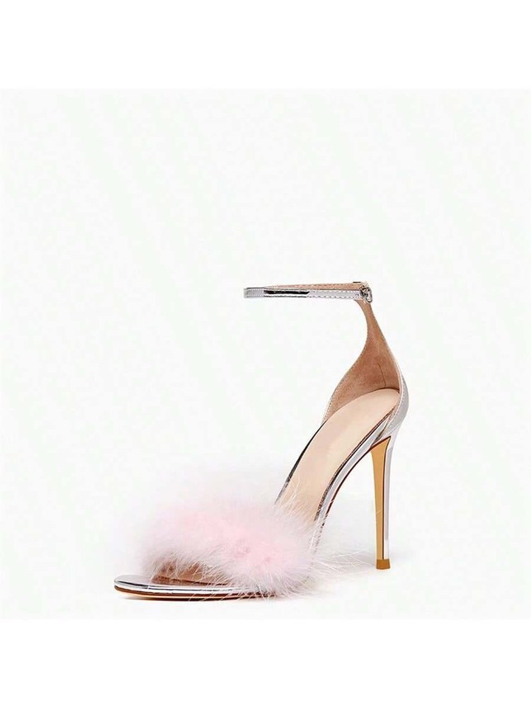 2023 새로운 여름 원 스트랩 버클 밍크 모피 스퀘어 헤드 인터넷 유명 인사 섹시한 중공 요정 모피 하이힐 샌들 여성용