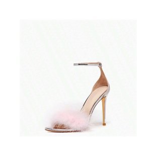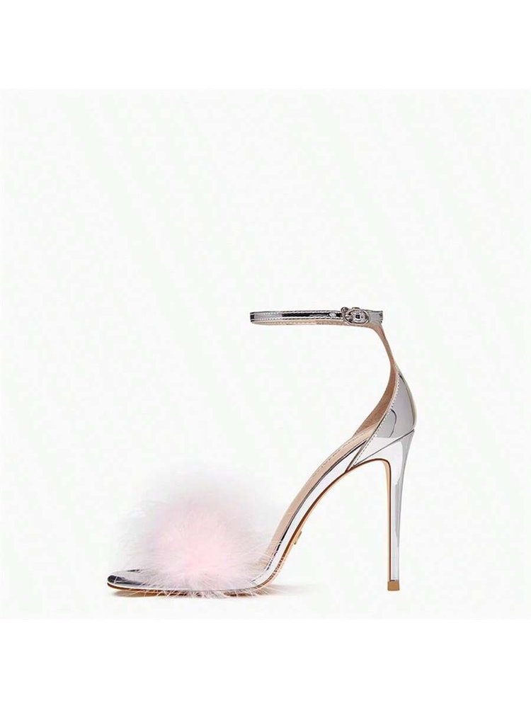 2023 새로운 여름 원 스트랩 버클 밍크 모피 스퀘어 헤드 인터넷 유명 인사 섹시한 중공 요정 모피 하이힐 샌들 여성용스토어 가기