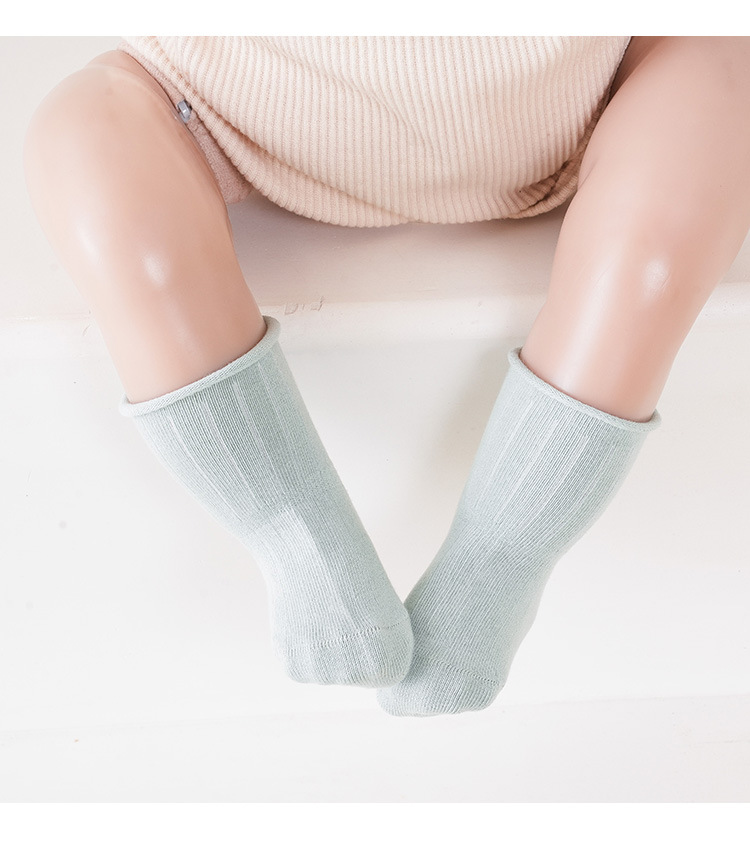 아기 양말 봄과 가을 0-3 개월 새로 태어난 남성과 여성 아기 뼈없는 입 지방 아기 다리 타이트면 중간 종아리 길이 양말스토어 가기