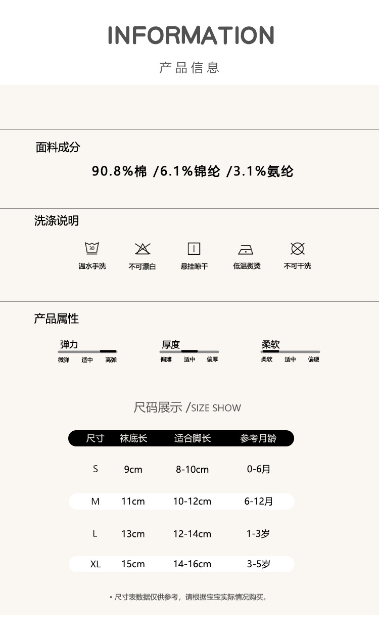 • S 크기 0-6 개월 (발 길이 8-10 cm에 적합)