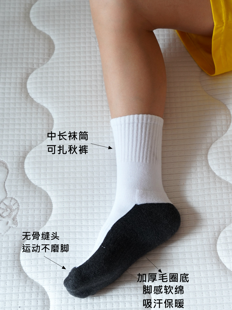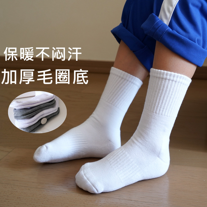 도매 가을과 겨울 어린이 흰색 학생 양말 두꺼운 수건 양말 소년과 소녀 스포츠 양말 실행 양말