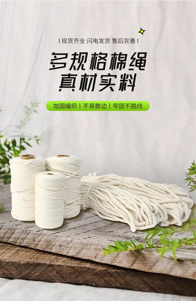 베이지 코튼 로프 DIY 수공예 소재 패키지 바인딩 드로 스트링 멀티 스트랜드 짠 코튼 로프 멀티 사양 코튼 로프스토어 가기