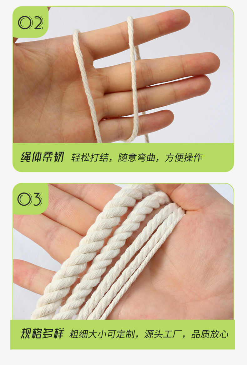 베이지 코튼 로프 DIY 수공예 소재 패키지 바인딩 드로 스트링 멀티 스트랜드 짠 코튼 로프 멀티 사양 코튼 로프