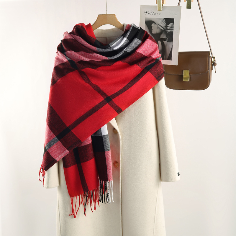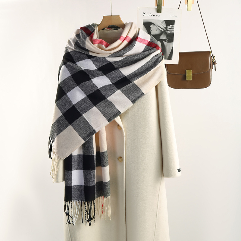 남성과 여성을위한 영국 스타일 격자 무늬 술 스카프 가을과 겨울에 두꺼운 따뜻한 캐시미어 모양의 목도리 이중 사용 스카프 원피스 배달
