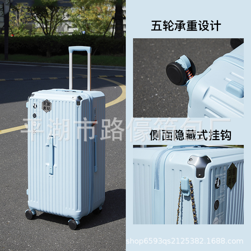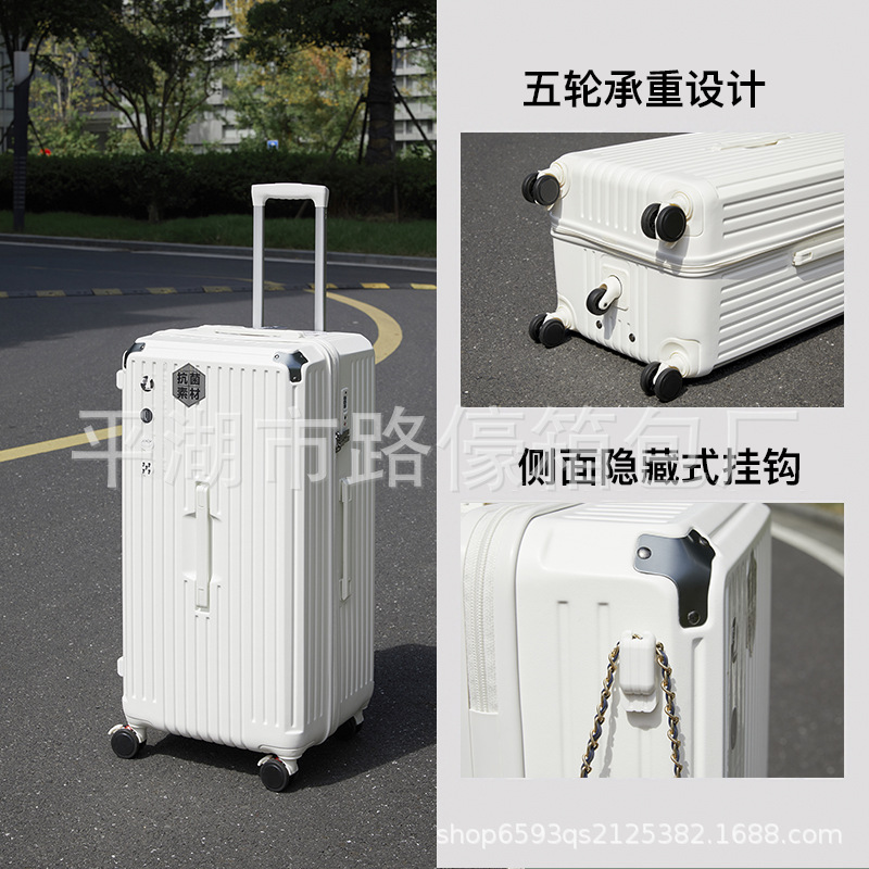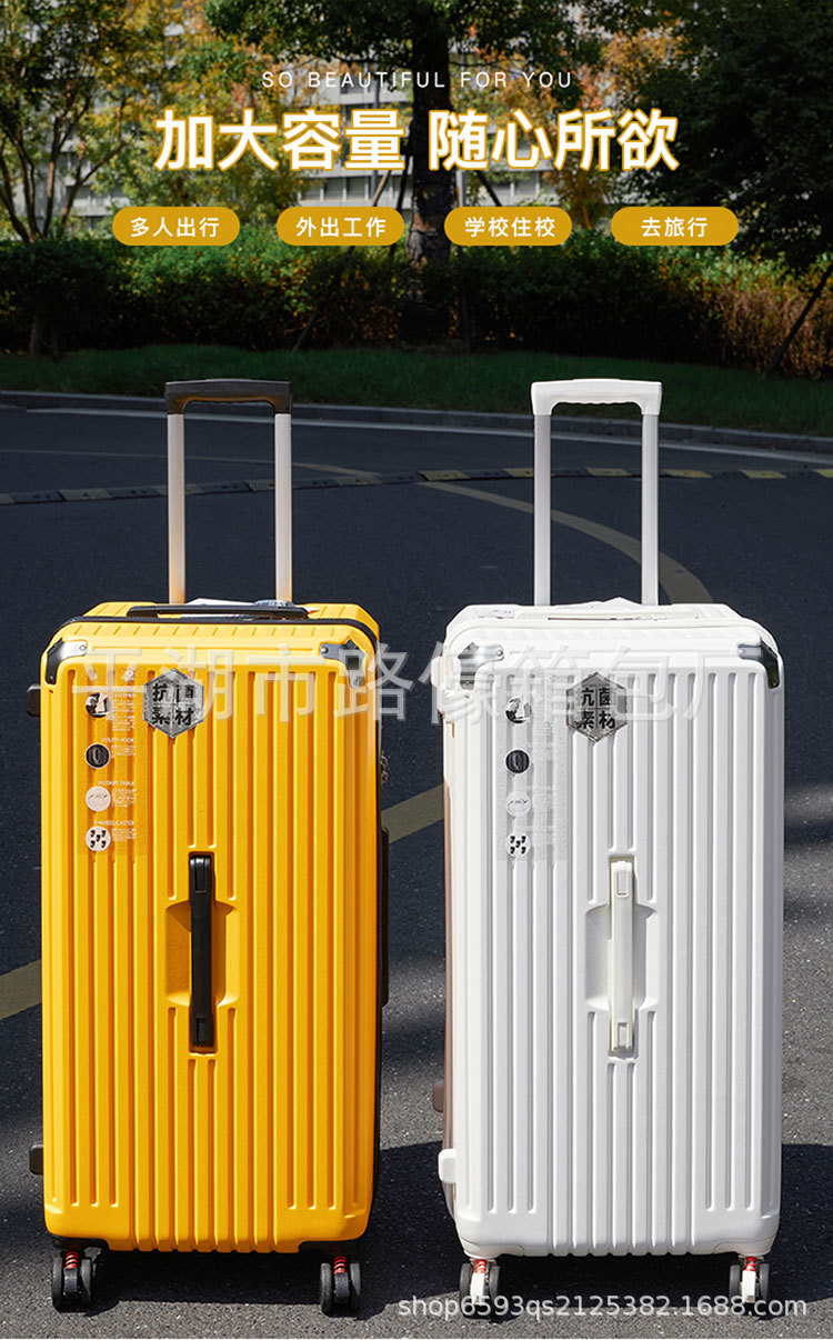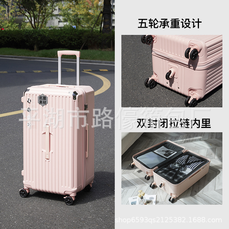 대용량 수하물 여성 32 인치 스프링 충격 흡수 브레이크 유니버설 휠 가방 남성 지퍼 가죽 케이스 학생스토어 가기
