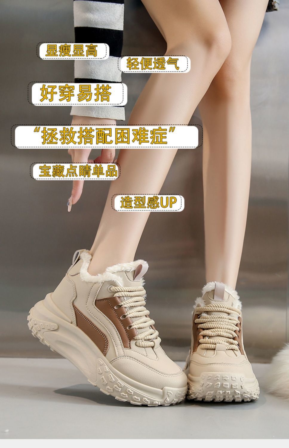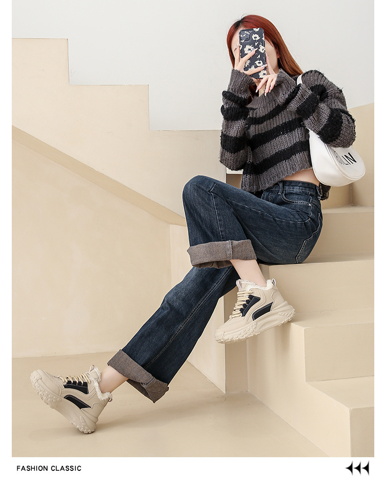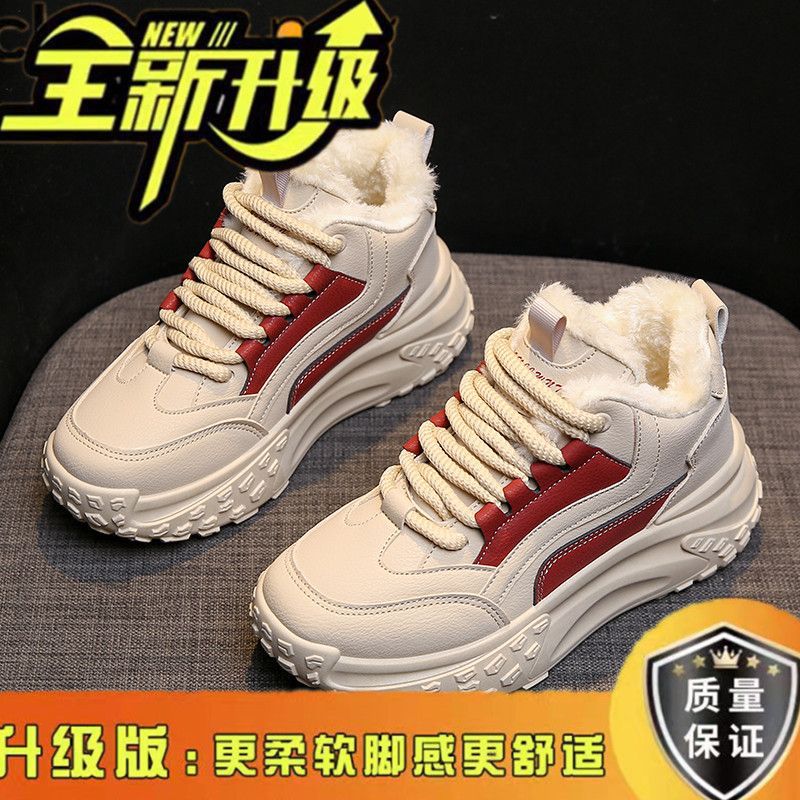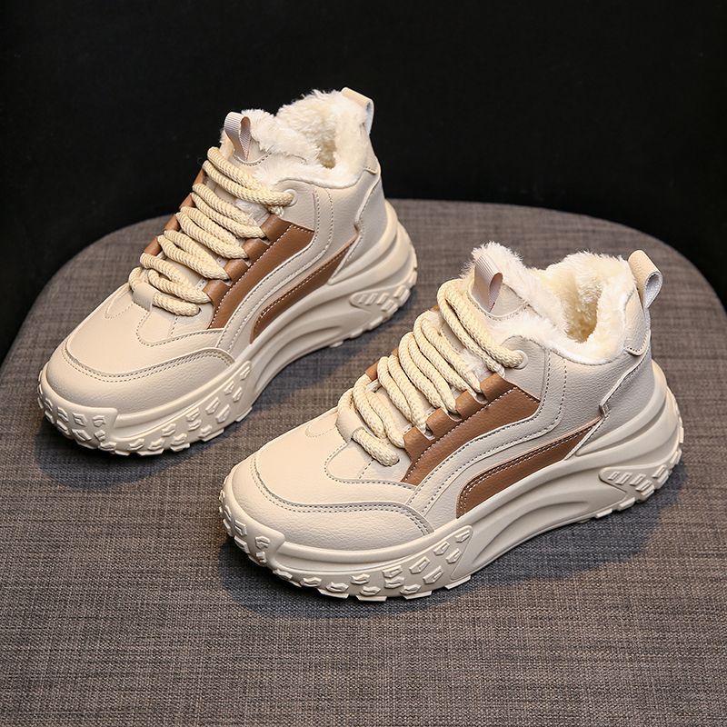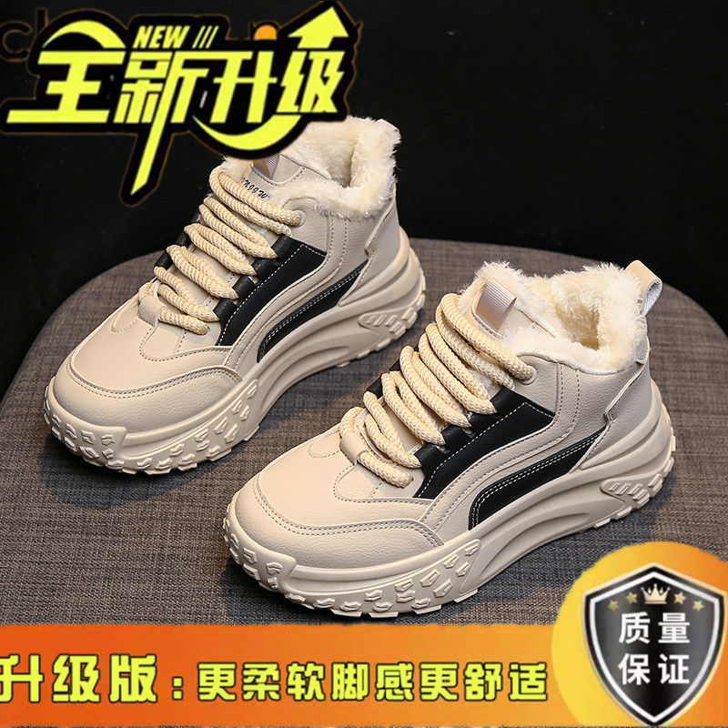 여성용 면화 패딩 신발 2024 새로운 겨울 하이 탑 스포츠 캐주얼 신발 기모 두꺼운 아빠 신발 학생 따뜻한 신발