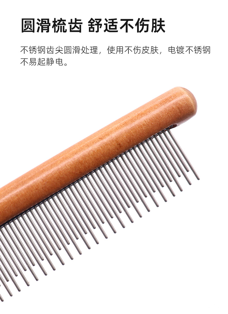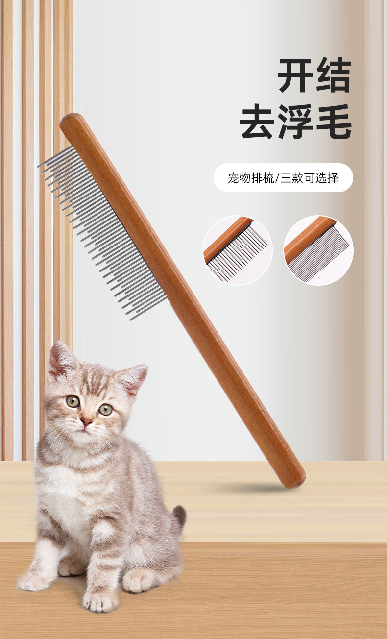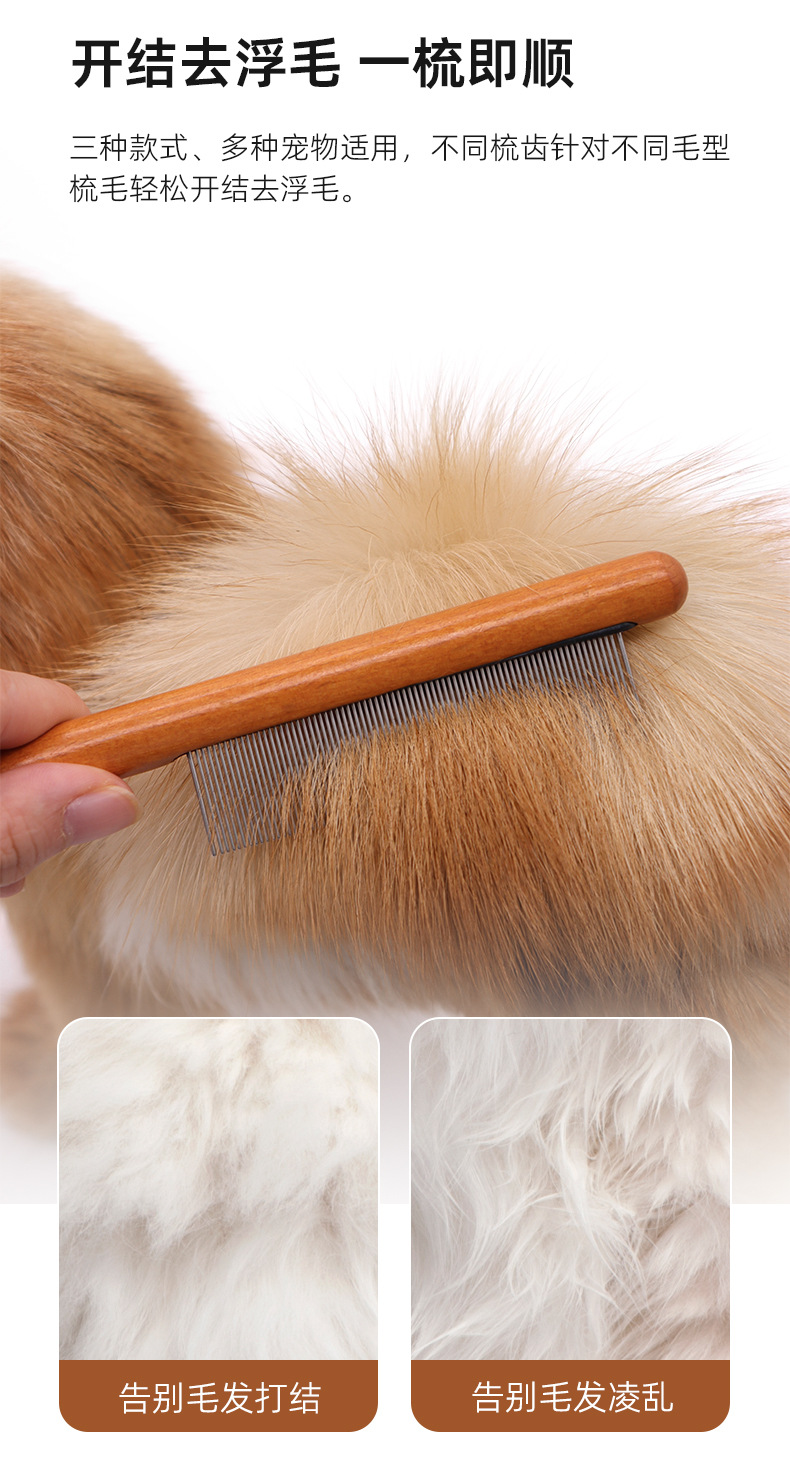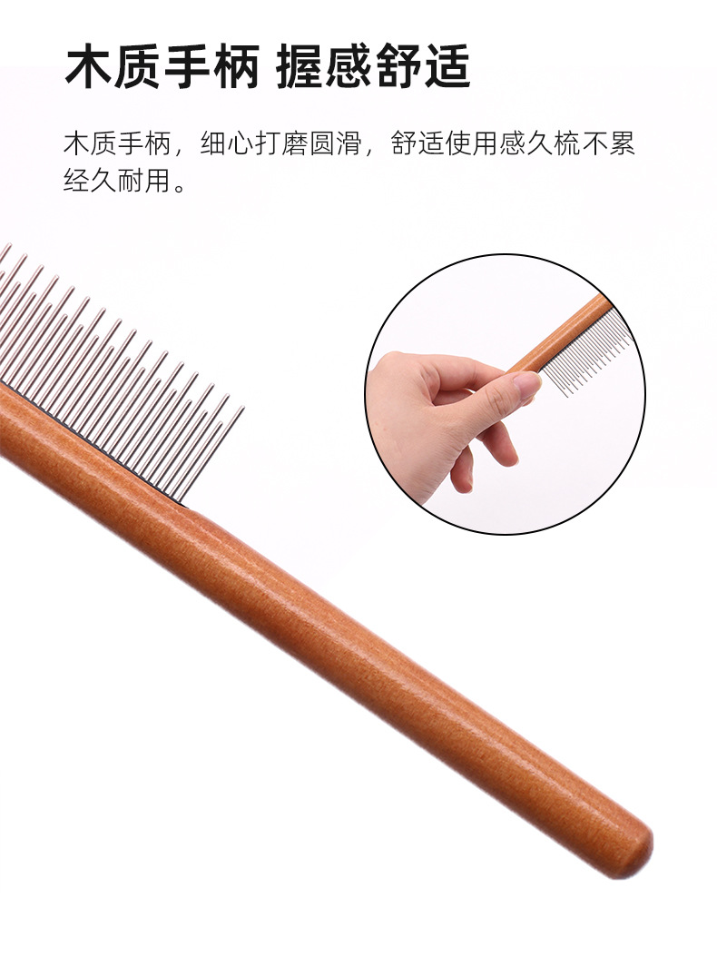 나무 손잡이 애완동물 빗, 벼룩 빗, 대형견 털 제거 빗, 강아지 털 관리 빗, 긴/짧은 바늘 고양이 빗스토어 가기