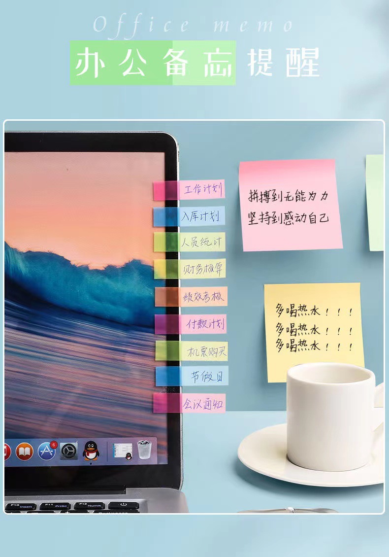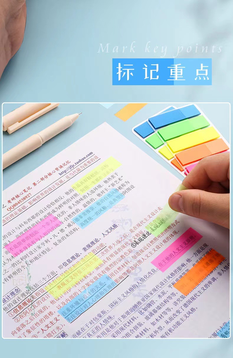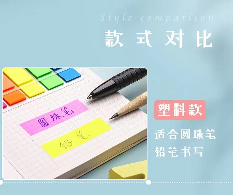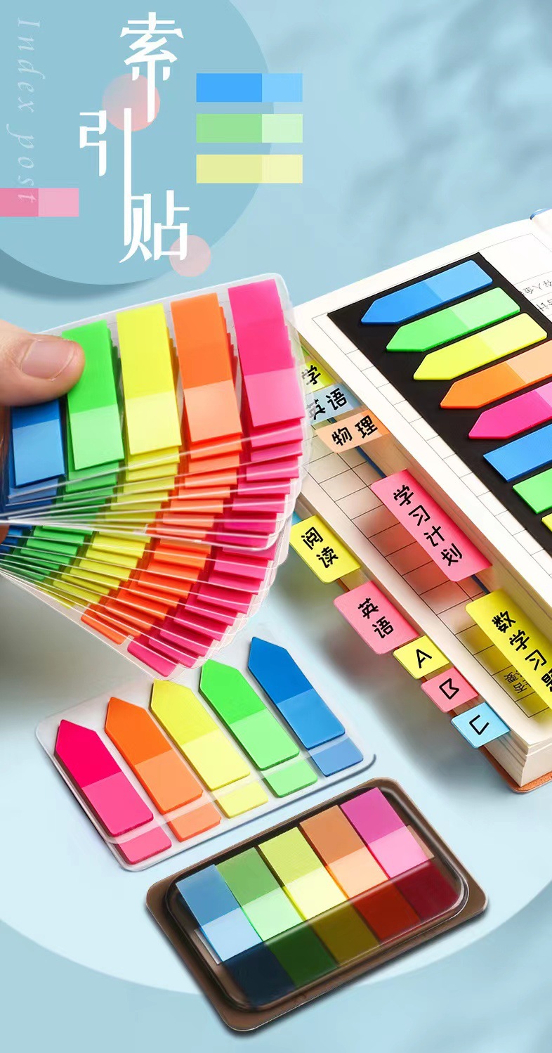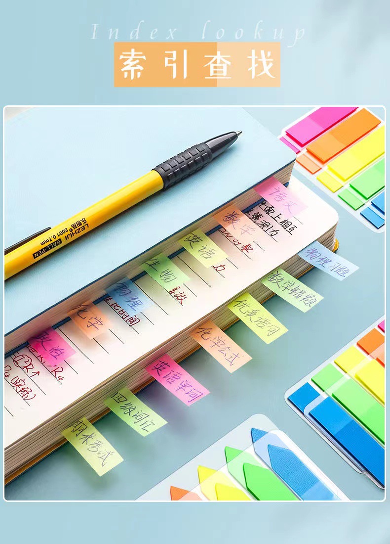 형광 포스트잇 라벨 스티커 명확한 플라스틱 마커 학생 분류 노트 지표 색인 북마크
