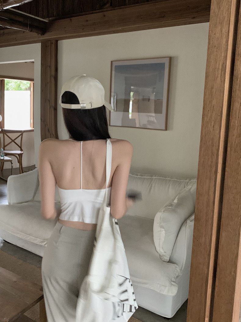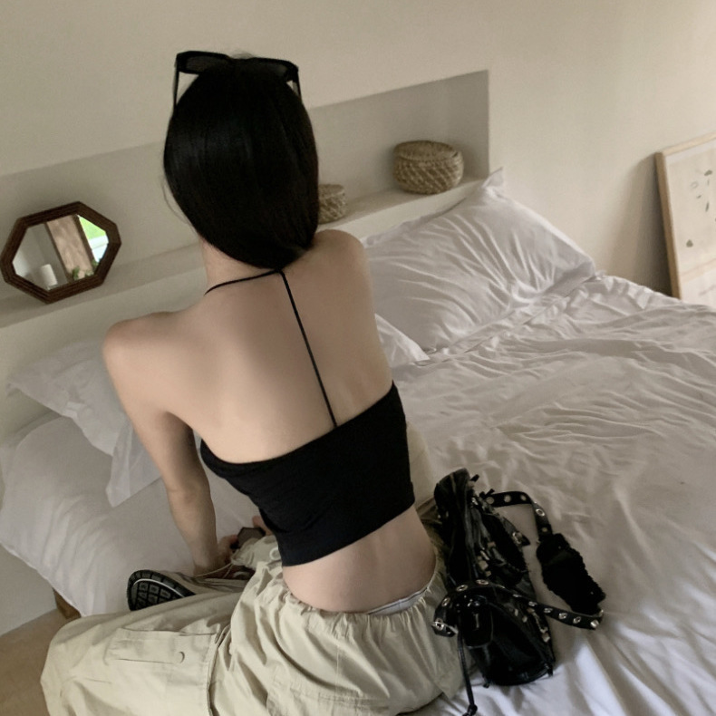 스파이스 걸스 짧은 목 매달린 작은 조끼 원피스 컵으로 장식 된 가슴 섹시한 Bottoming 외부 조끼 착용 조끼 여자 탑