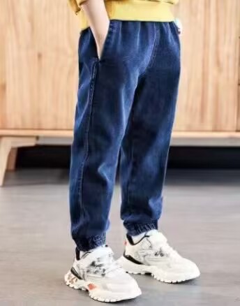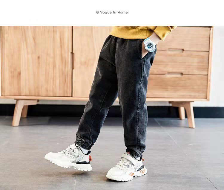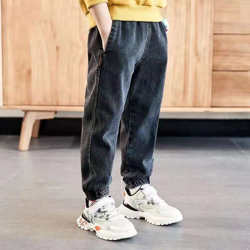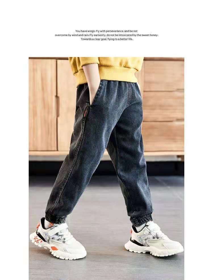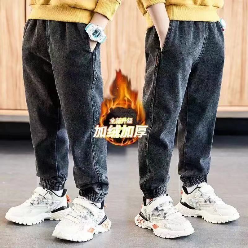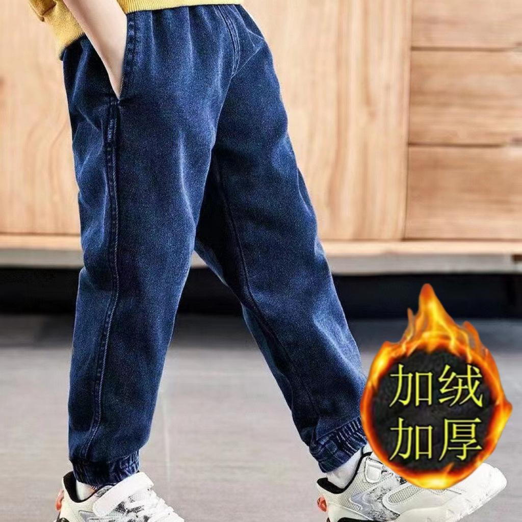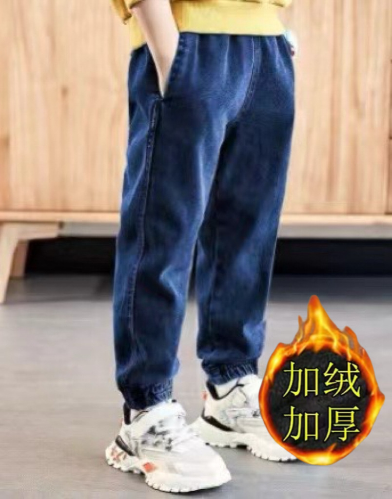소년 청바지 가을, 겨울 2023 새로운 스타일 플러스 벨벳 잘 생긴 중대형 소년 겨울 두꺼운 바지 아동 의류 유행