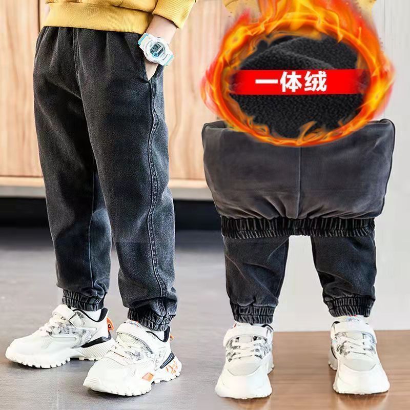 소년 청바지 가을, 겨울 2023 새로운 스타일 플러스 벨벳 잘 생긴 중대형 소년 겨울 두꺼운 바지 아동 의류 유행스토어 가기