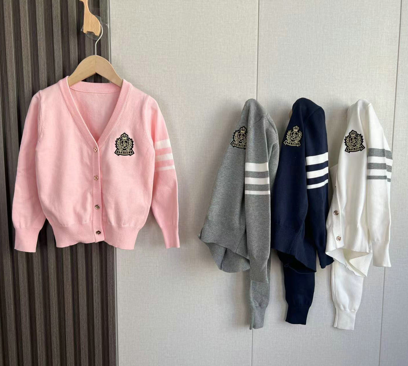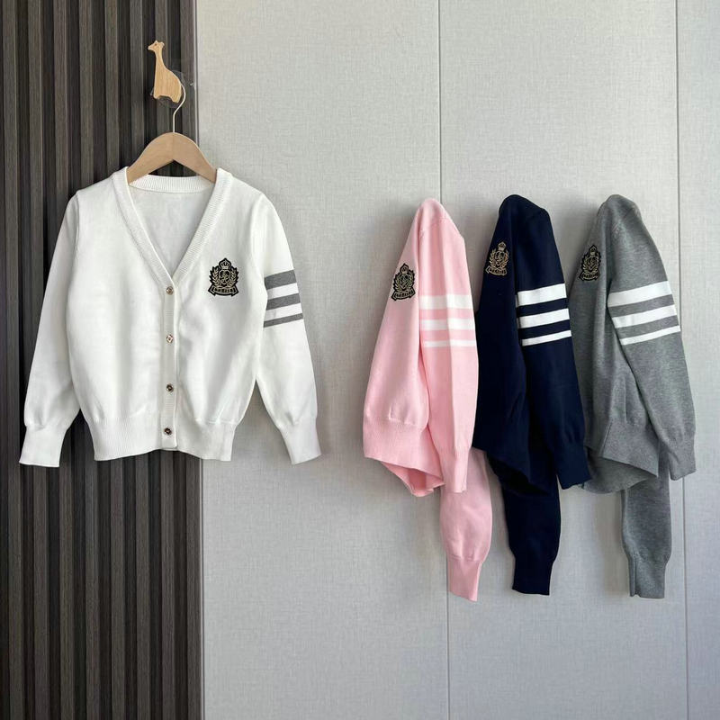 중대형 여아용 새해 스타일 싱글 브레스티드 V넥 칼리지 스타일 면사 니트 가디건스토어 가기