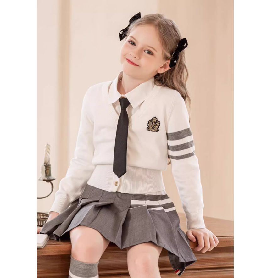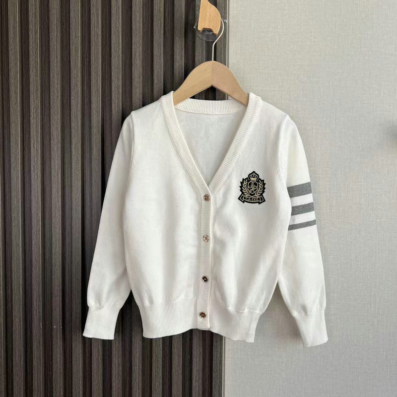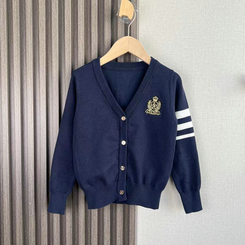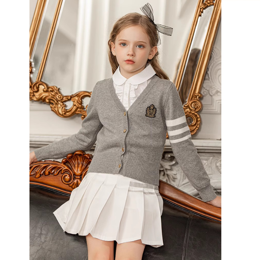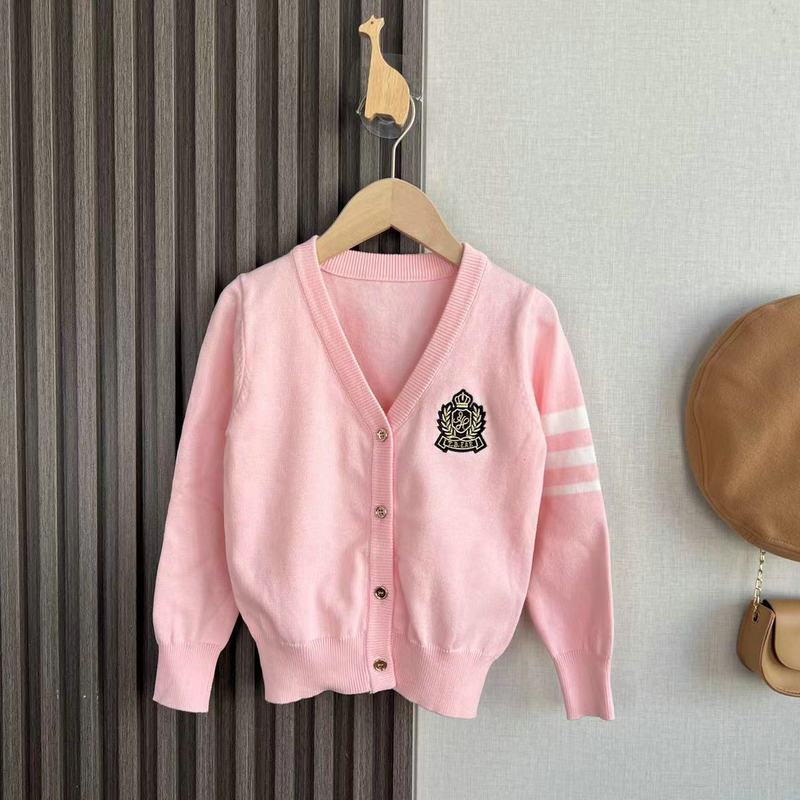 중대형 여아용 새해 스타일 싱글 브레스티드 V넥 칼리지 스타일 면사 니트 가디건