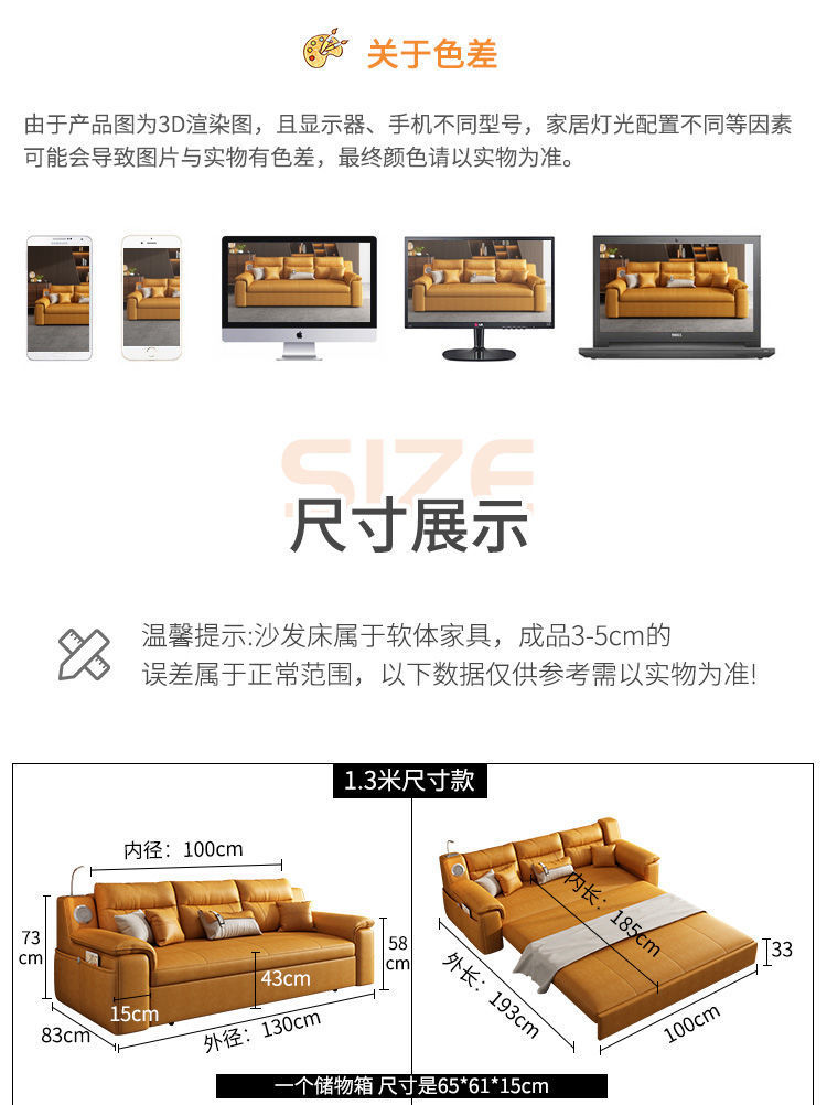 기술 천 소파 침대 접이식 듀얼 사용 북유럽 거실 작은 아파트 다기능 텔레스코픽 침대 더블 시트 및 침실 보관스토어 가기