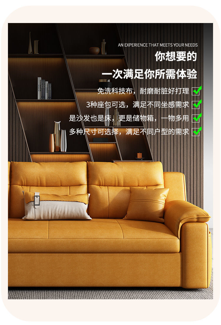 기술 천 소파 침대 접이식 듀얼 사용 북유럽 거실 작은 아파트 다기능 텔레스코픽 침대 더블 시트 및 침실 보관