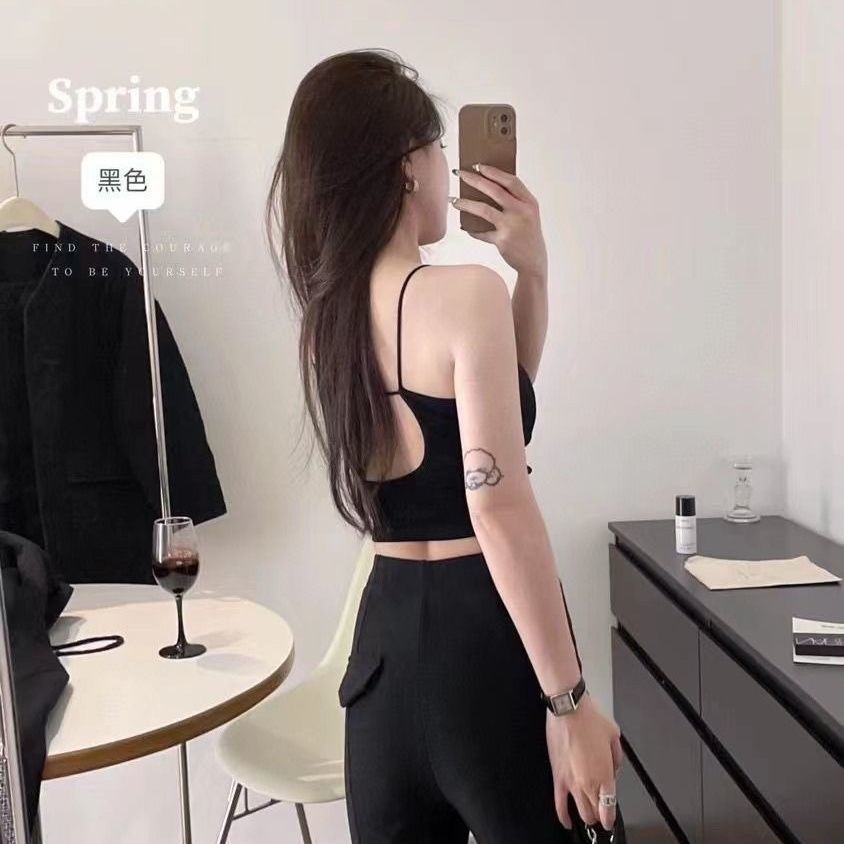 코튼 뷰티 백 작은 슬링 가슴 패드 원피스 조끼 겉옷 슬리밍 다목적 포장 가슴 소녀 단색 짧은 탑