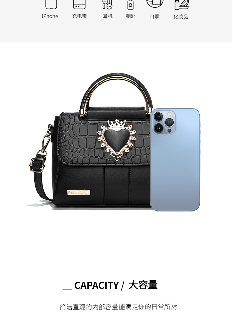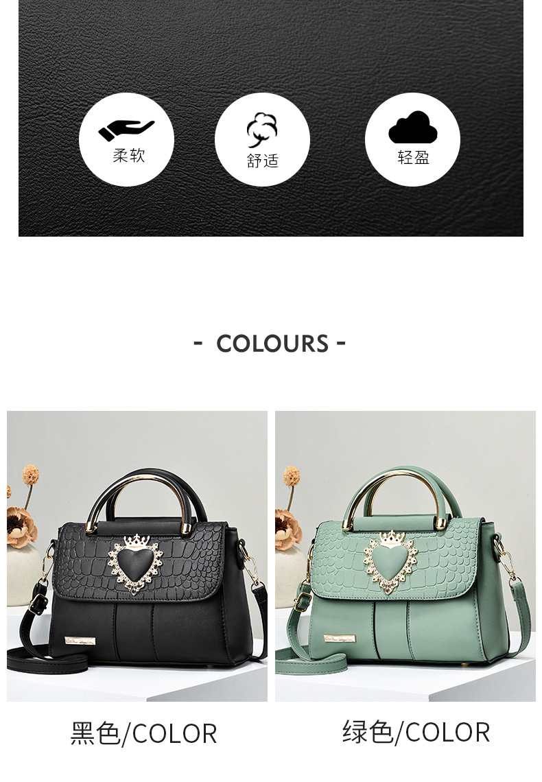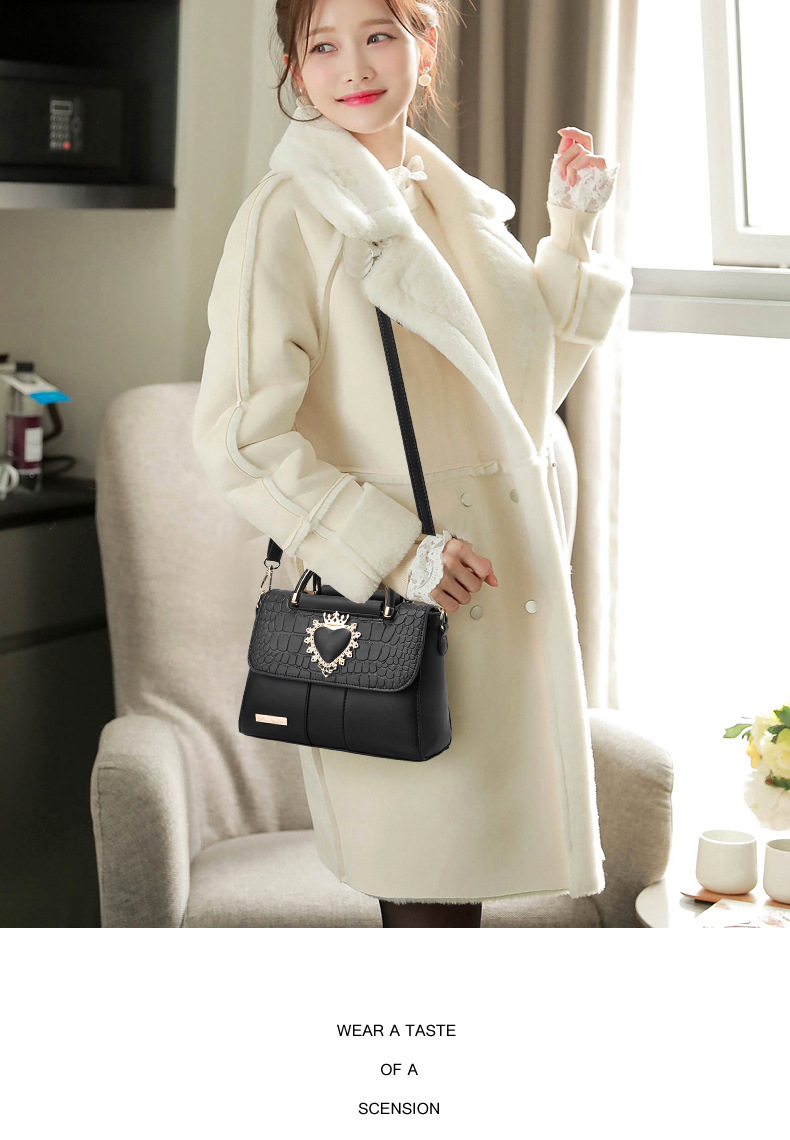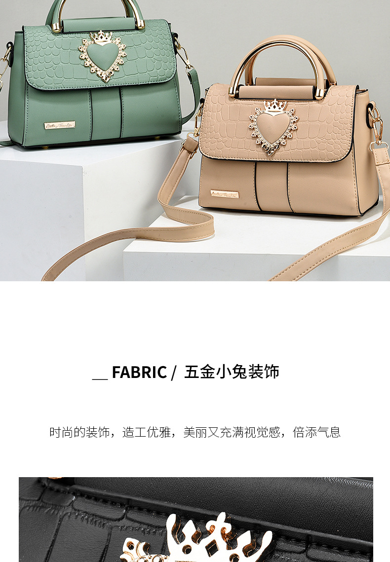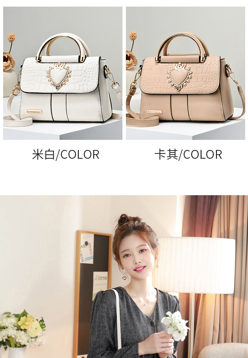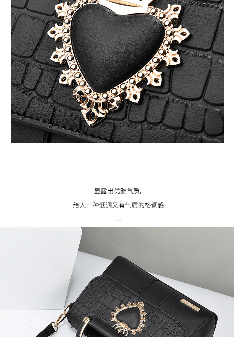 제조 업체 2024 새로운 복숭아 심장 악어 패턴 간단한 우아한 패션 크로스 바디 어깨 휴대용 여성 가방 원피스 배달