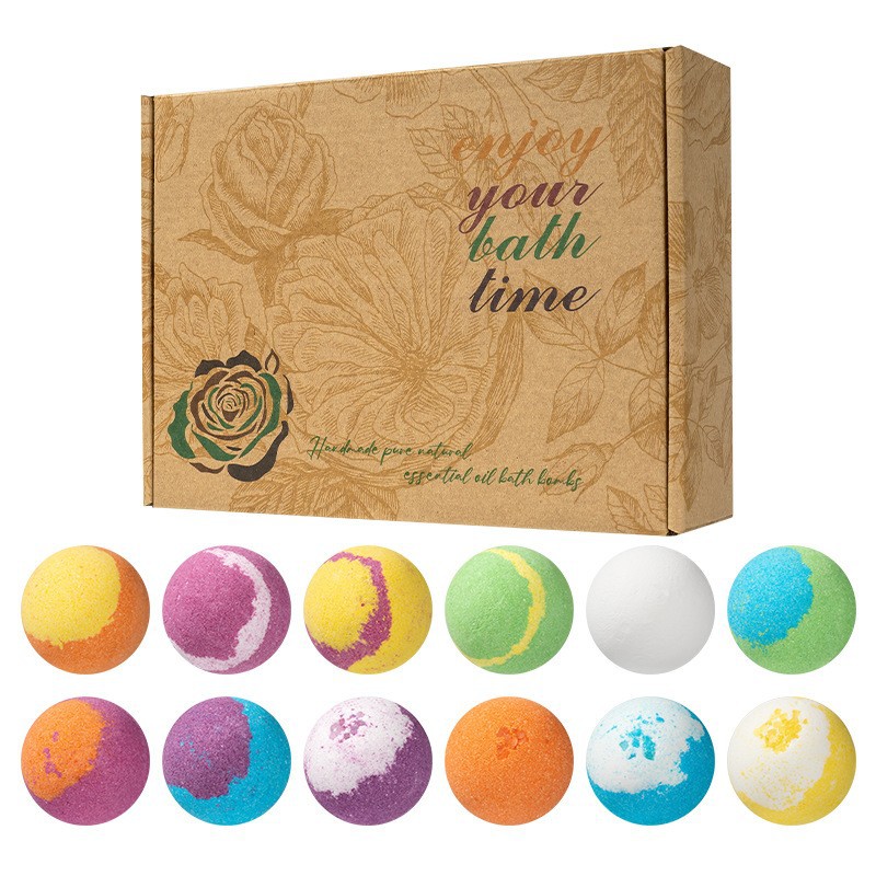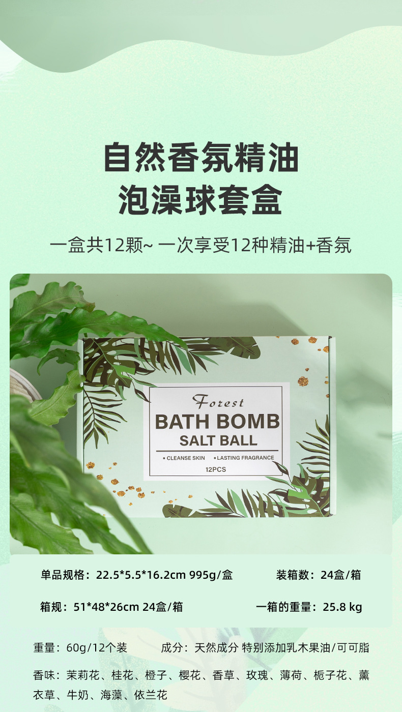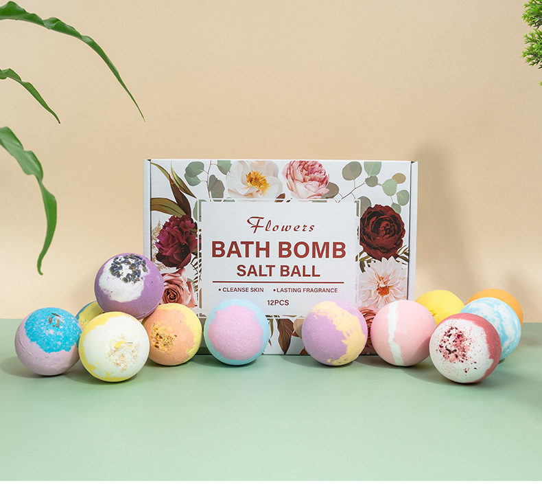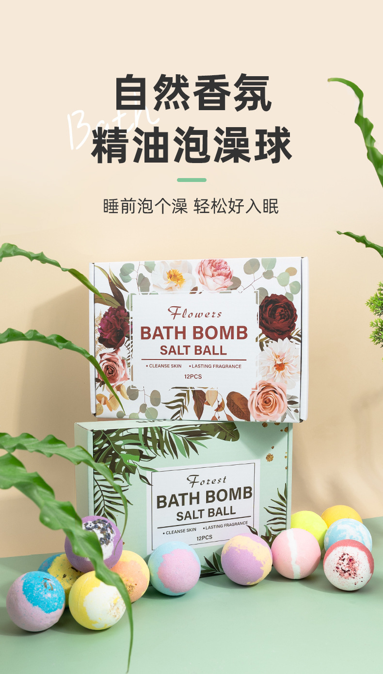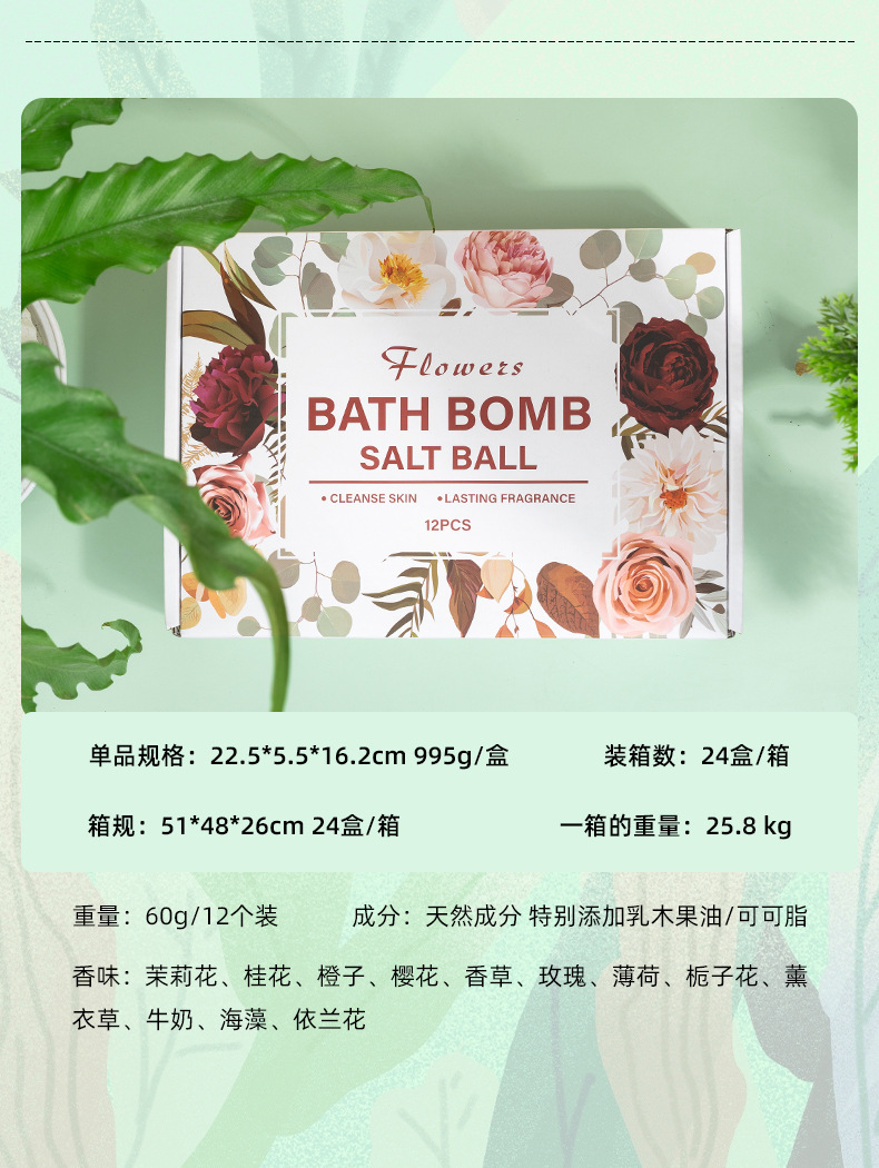 국경 간 지점 60g * 12 목욕 소금 공 세트 상자 거품 공 상자 말린 꽃 거품 목욕 공 도매 공장스토어 가기