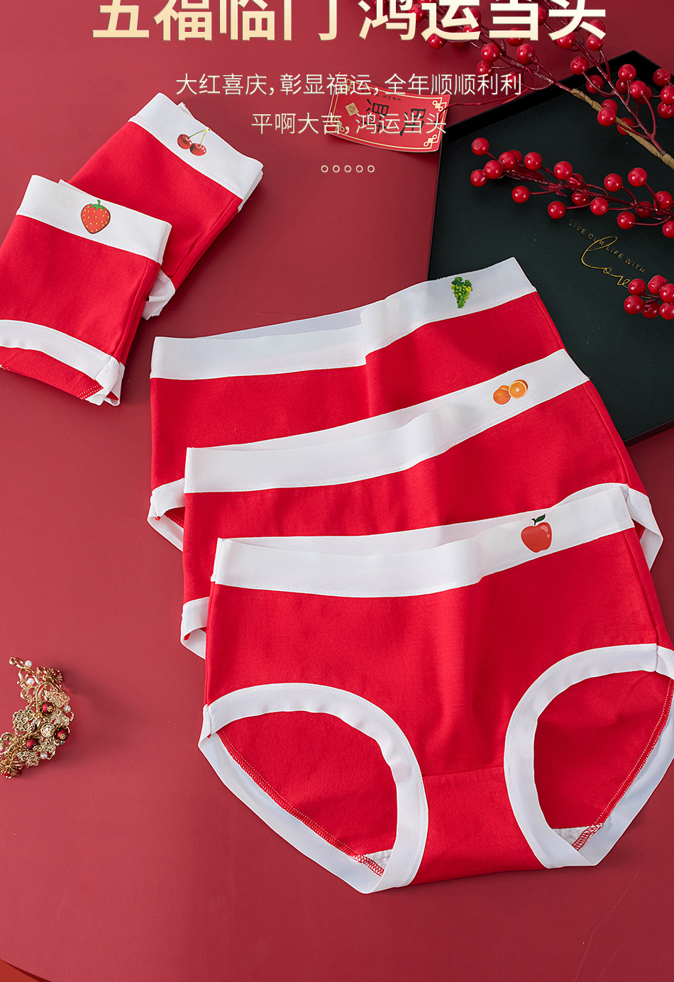 밝은 빨간색 여성면 속옷 여성면 가랑이 원활한 플러스 사이즈 출생 년 행운의 축제 중간 허리 브리프스토어 가기