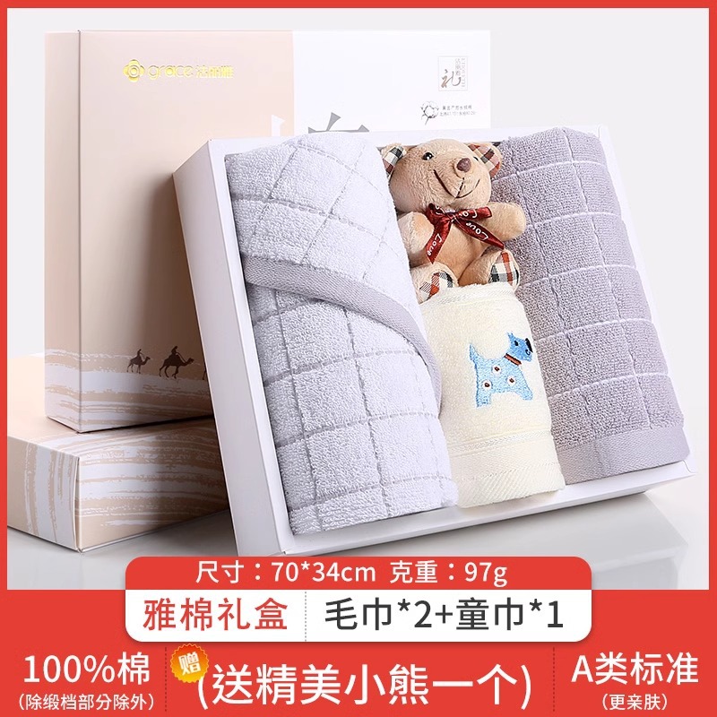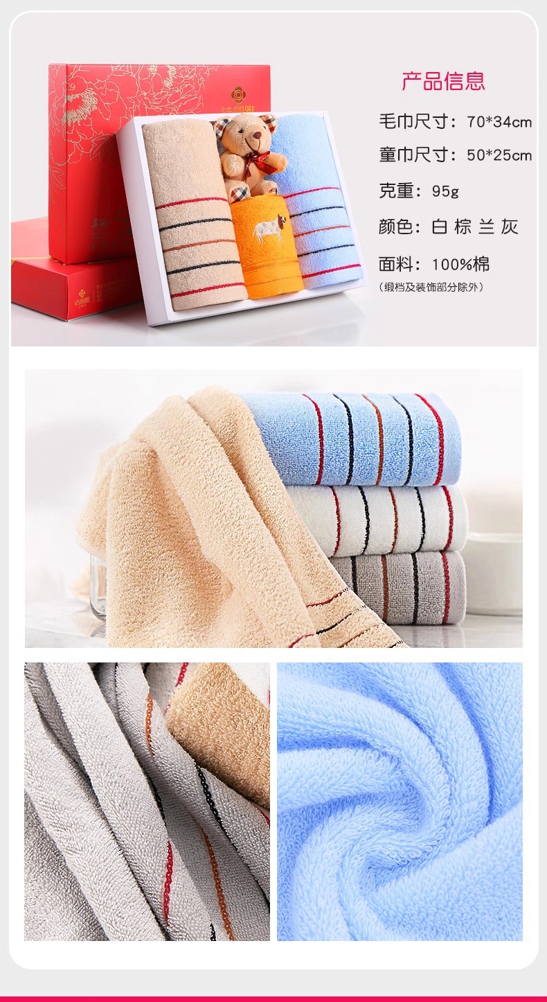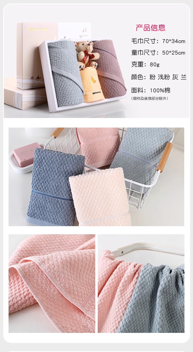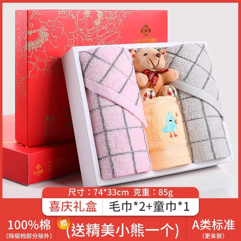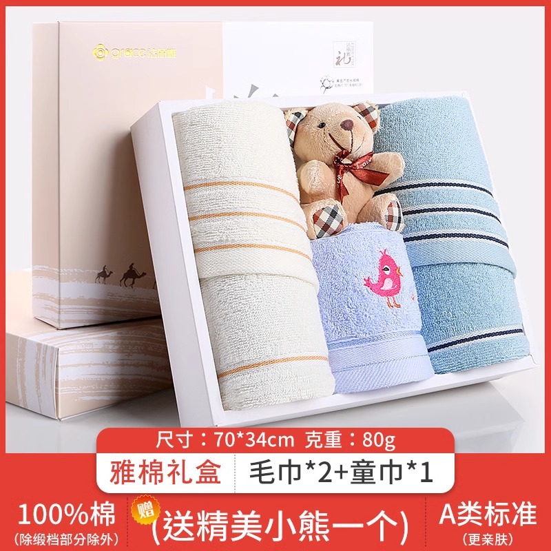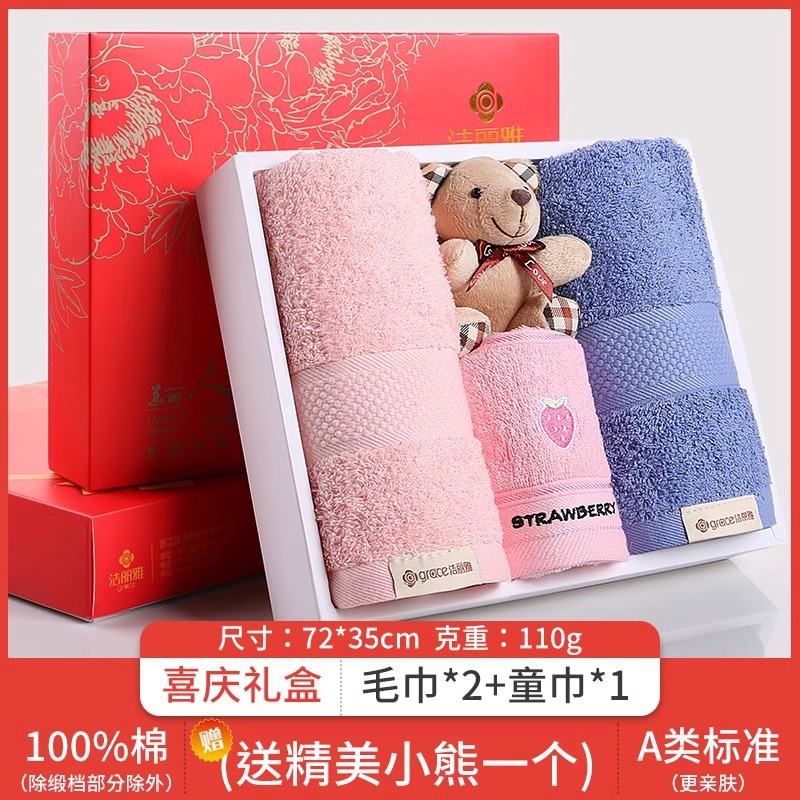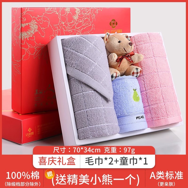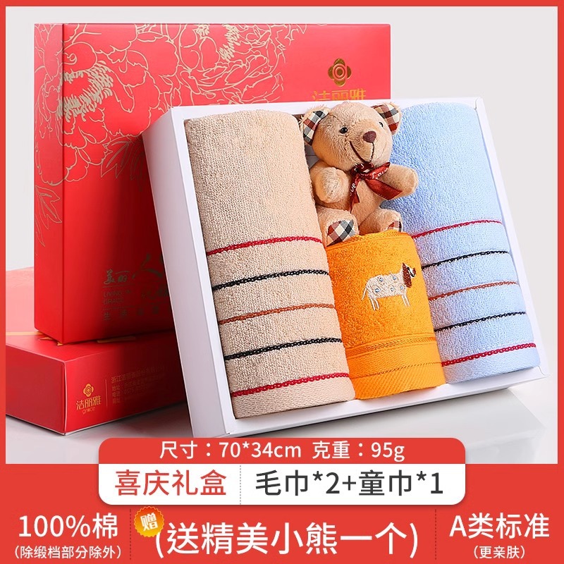 Jielia 수건 3 조각 선물 상자 순수한면 귀여운 어린이 수건 세트 웨딩 선물 새해 선물 동반 선물