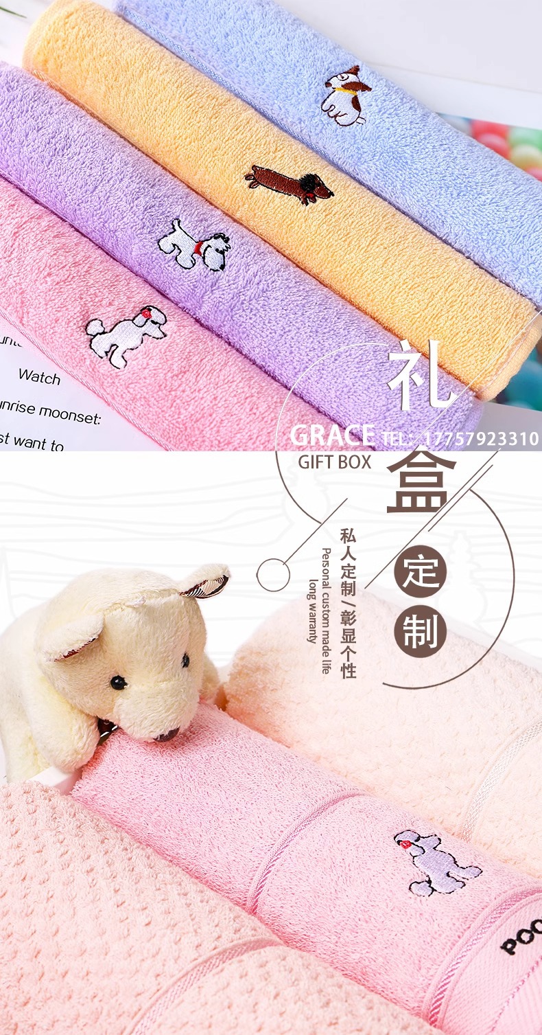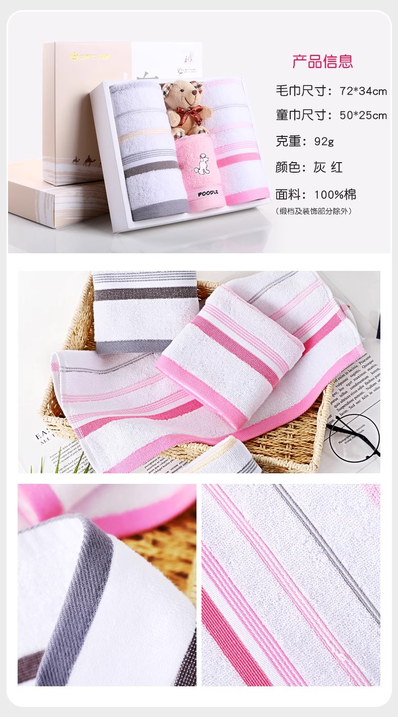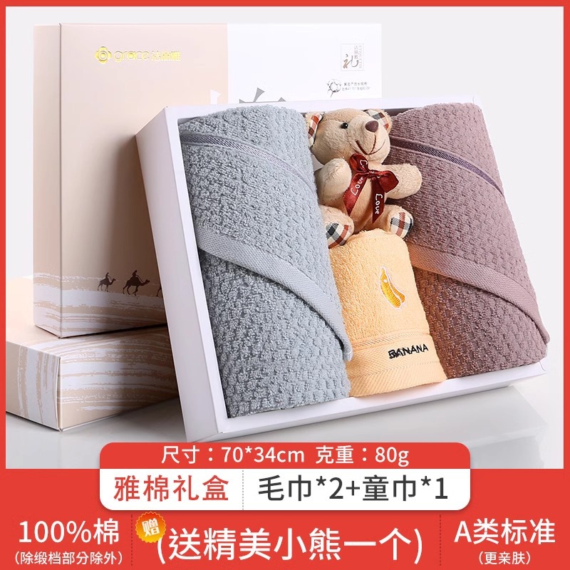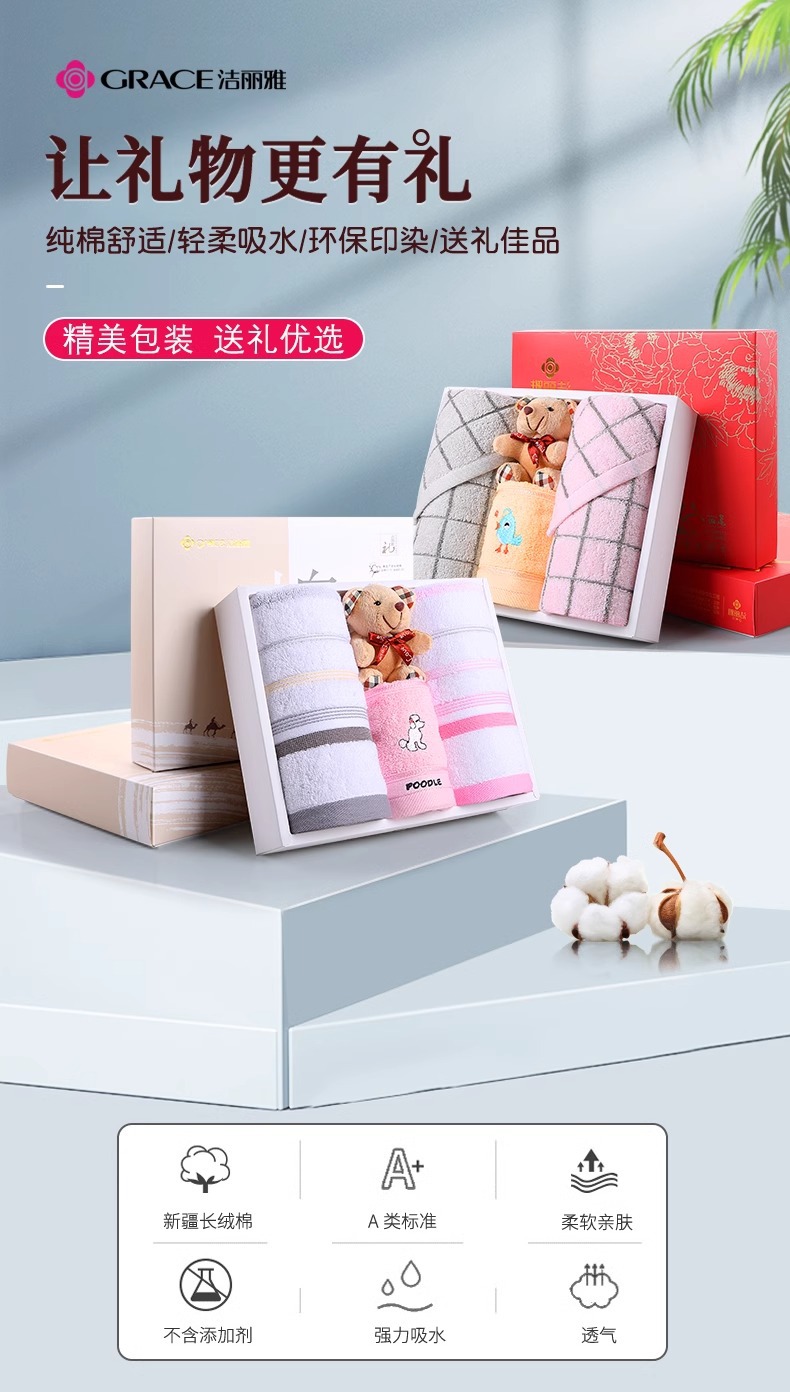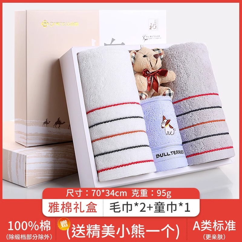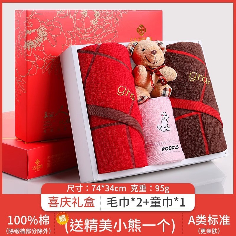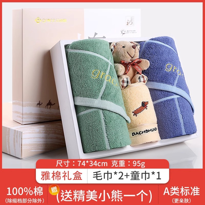 Jielia 수건 3 조각 선물 상자 순수한면 귀여운 어린이 수건 세트 웨딩 선물 새해 선물 동반 선물