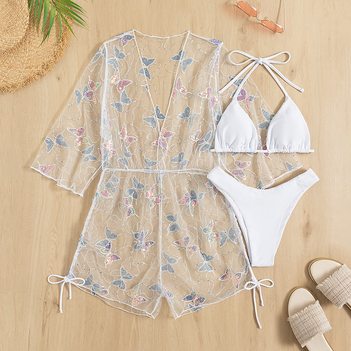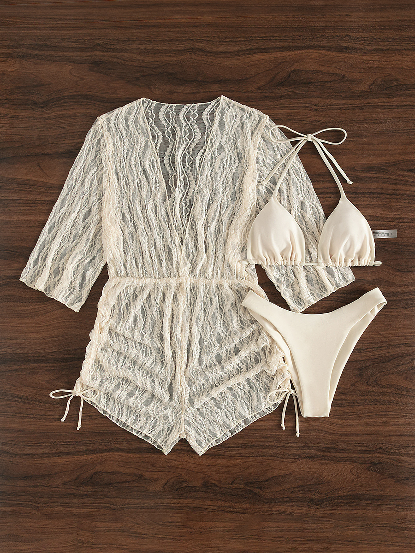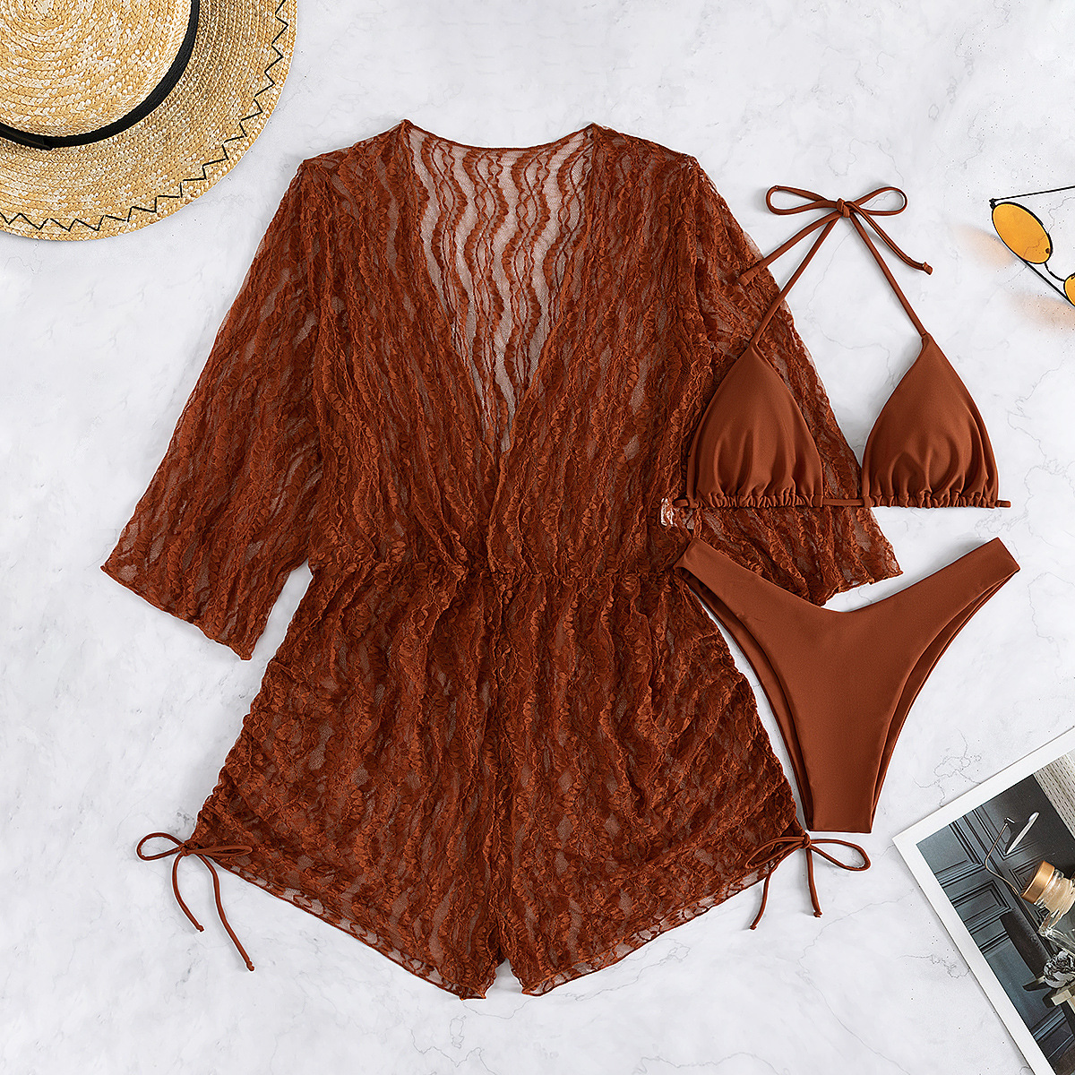 국경을 넘는 새로운 유럽과 미국의 수영복 레이스 비키니 메쉬 3 피스 세트 섹시한 등이없는 분할 비키니 수영복