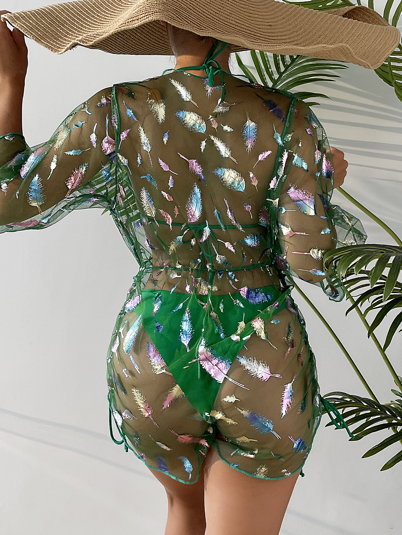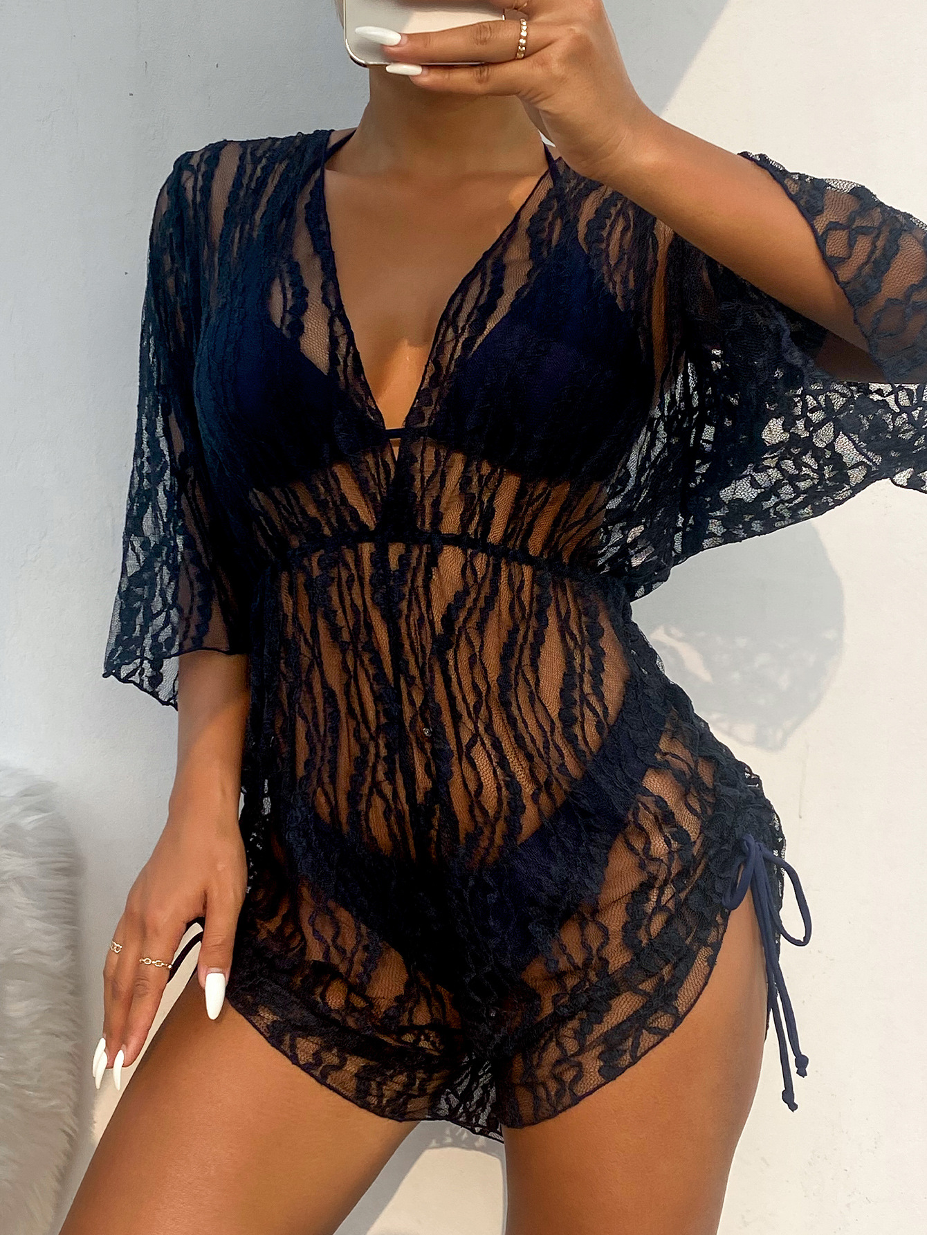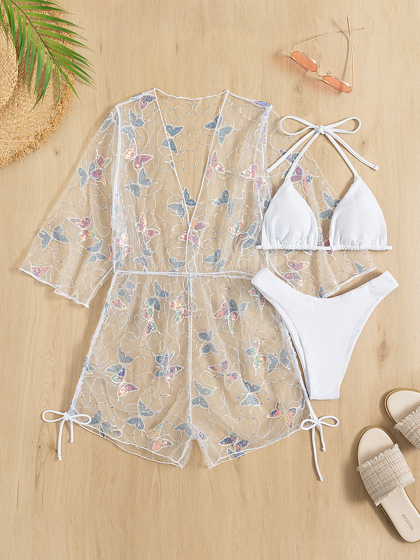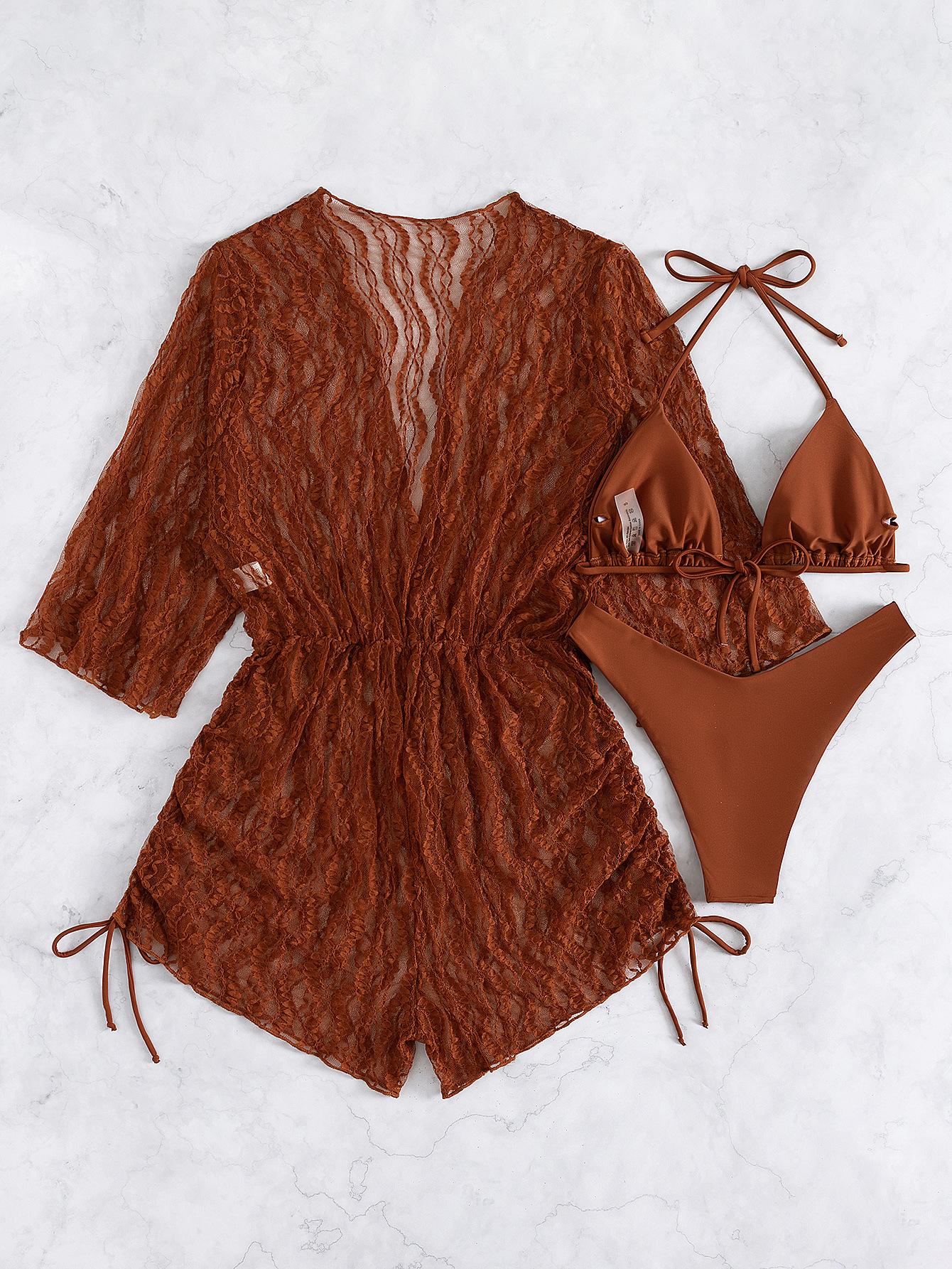 국경을 넘는 새로운 유럽과 미국의 수영복 레이스 비키니 메쉬 3 피스 세트 섹시한 등이없는 분할 비키니 수영복