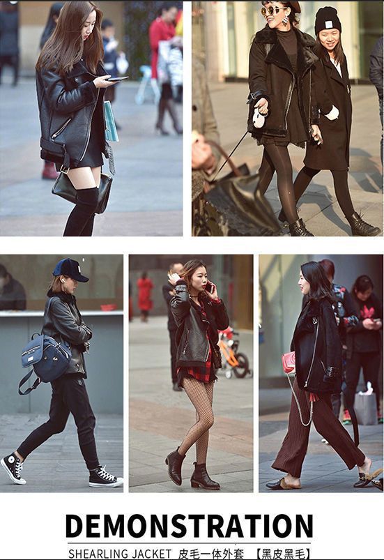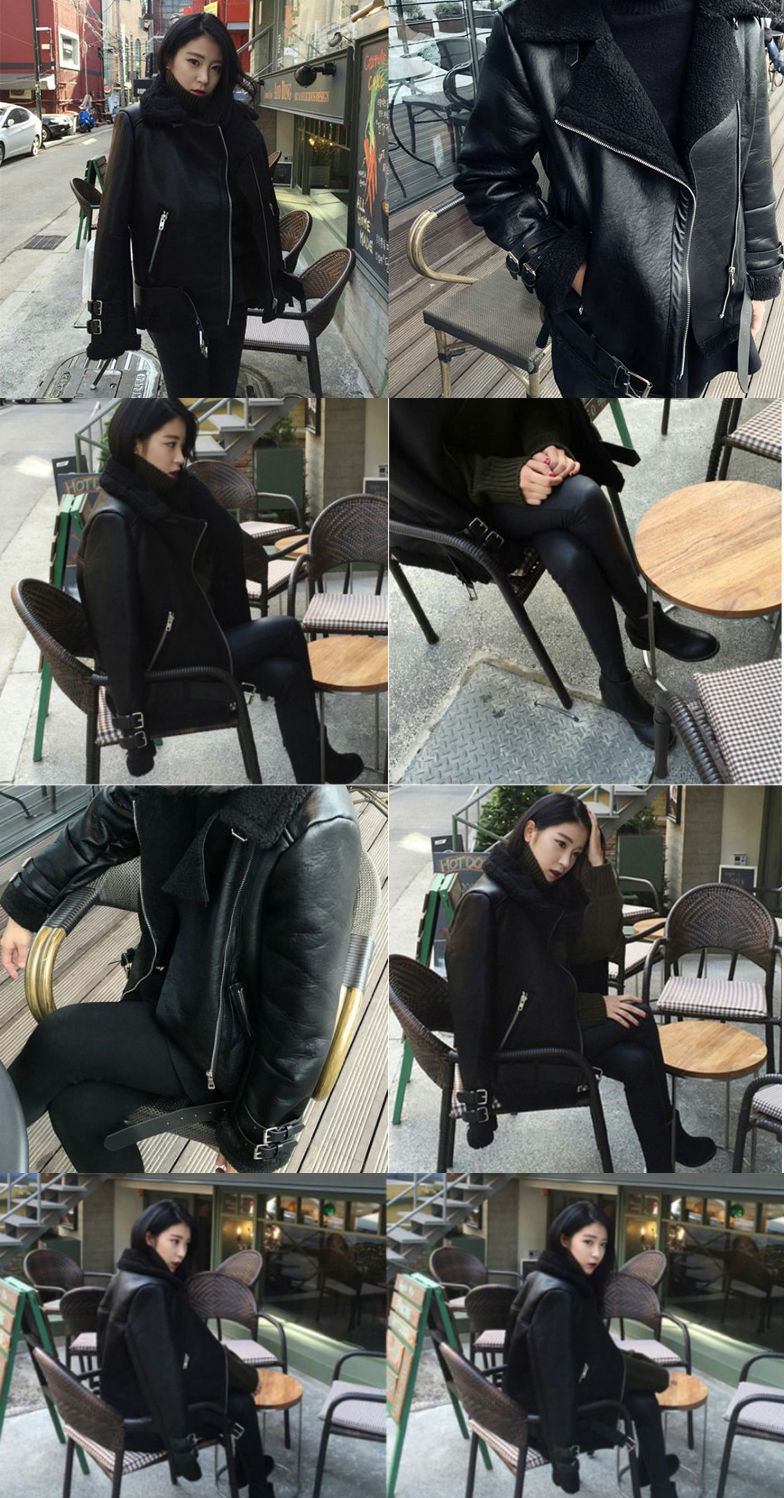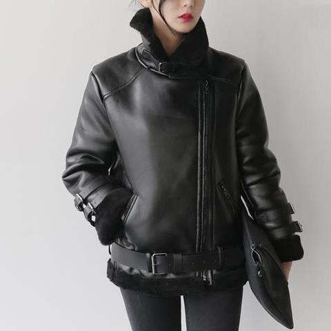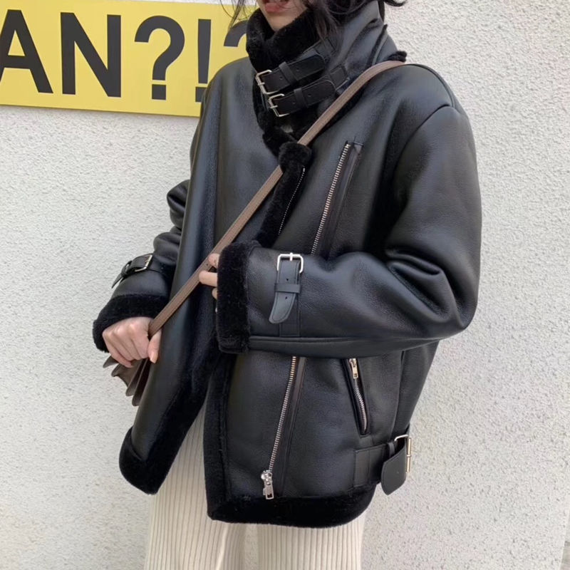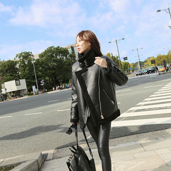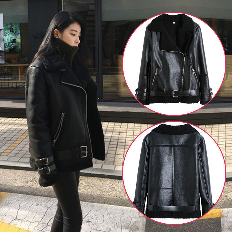 가을과 겨울 스탠드 칼라 PU 오토바이 가죽 코트 원피스 양모 기모 두껍게 자켓 스트리트 중간 길이의 코튼 패딩 코트 여성용스토어 가기