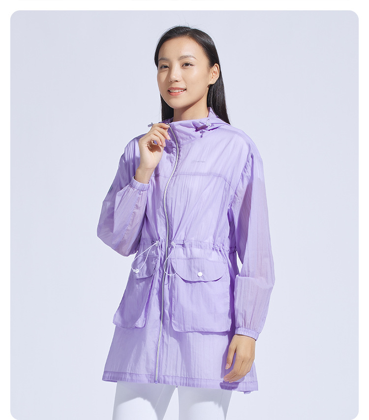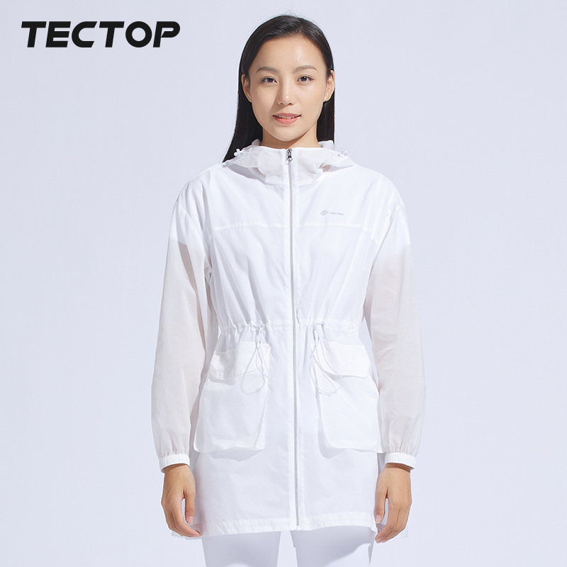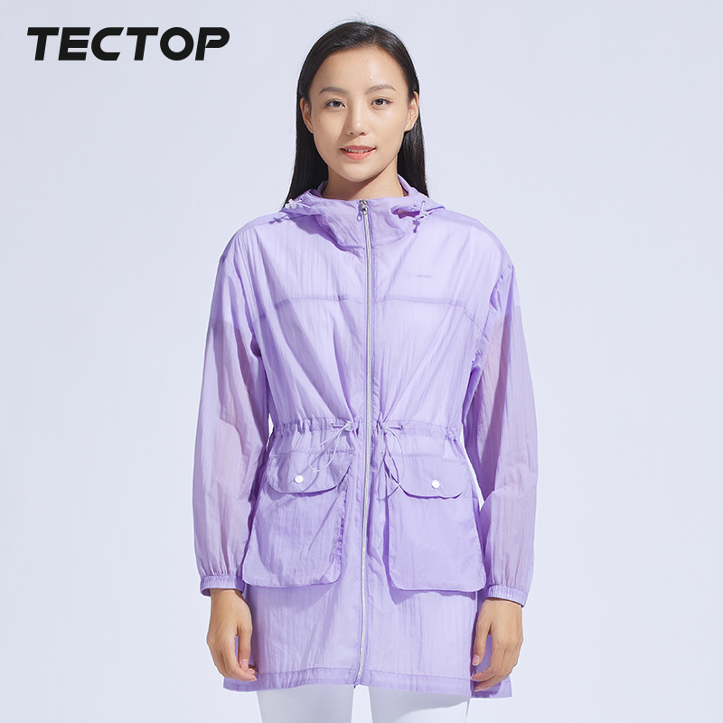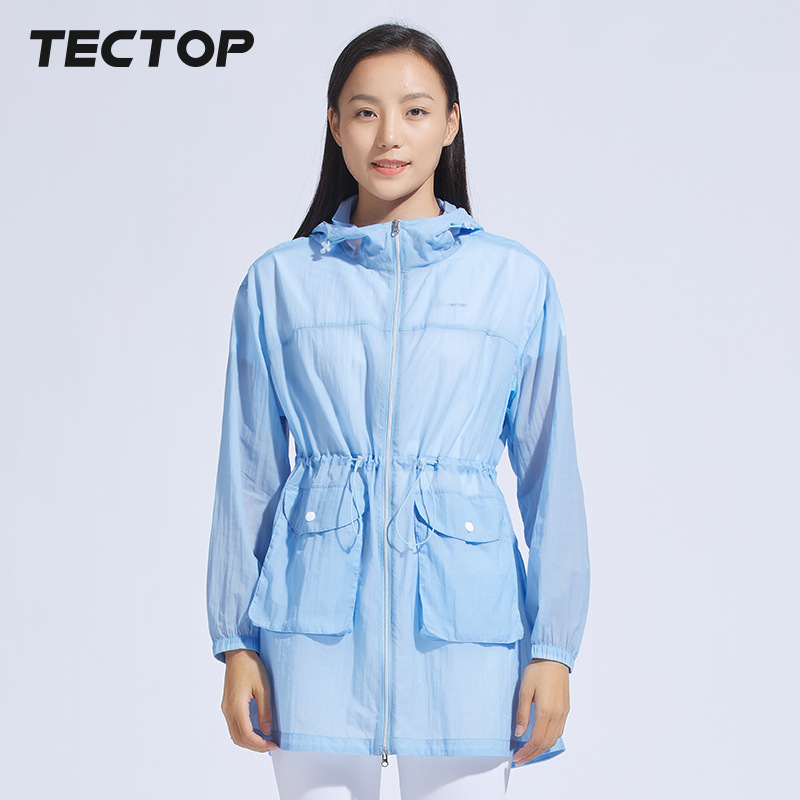 Tantuo 야외 중간 길이 여름 얇은 UV 보호 코트 여성의 스포츠 통기성 연장 된 태양 보호 스킨 코트
