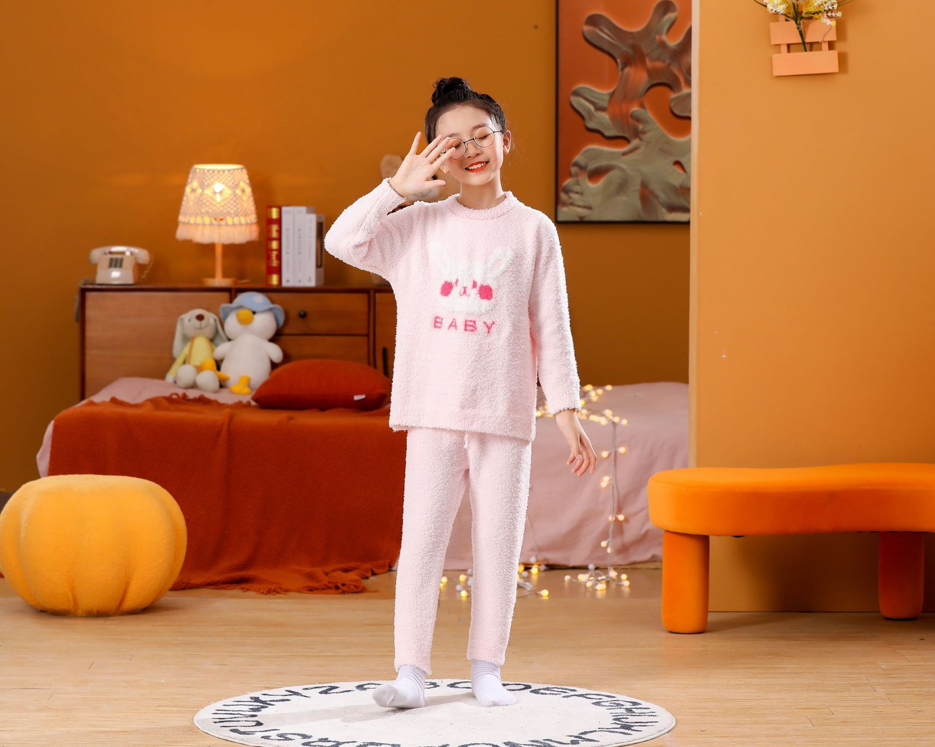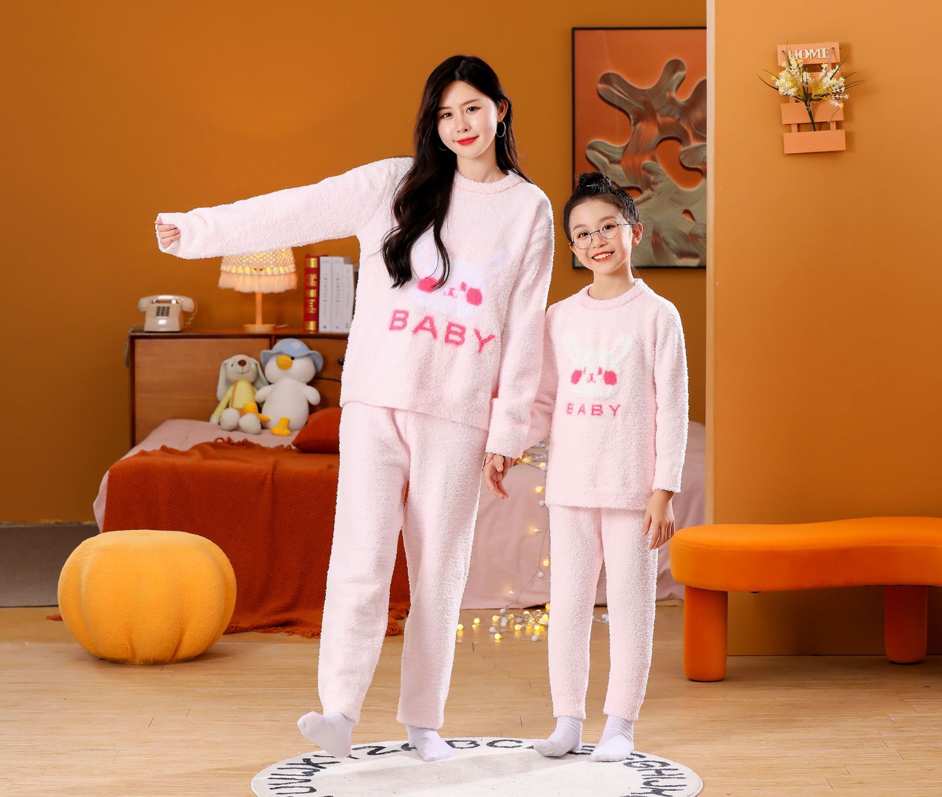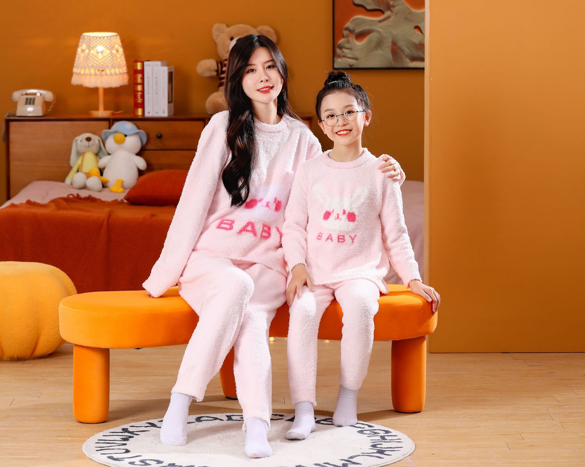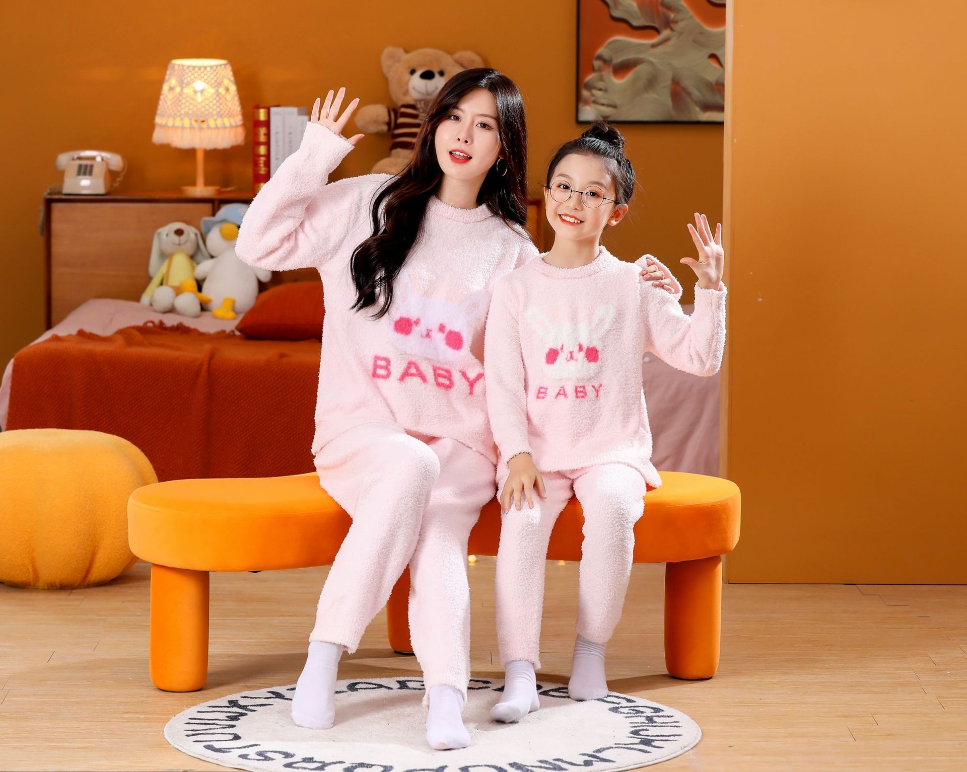 가을과 겨울 산호 양털 핑크 잠옷 긴팔 홈웨어 여성의 귀여운 토끼 따뜻한 반 벨벳 세트스토어 가기