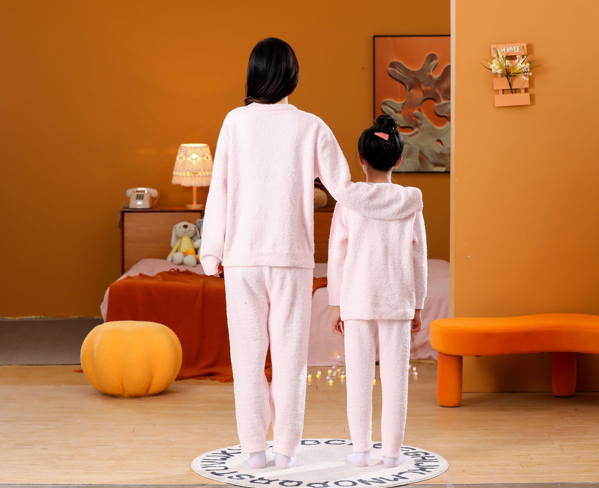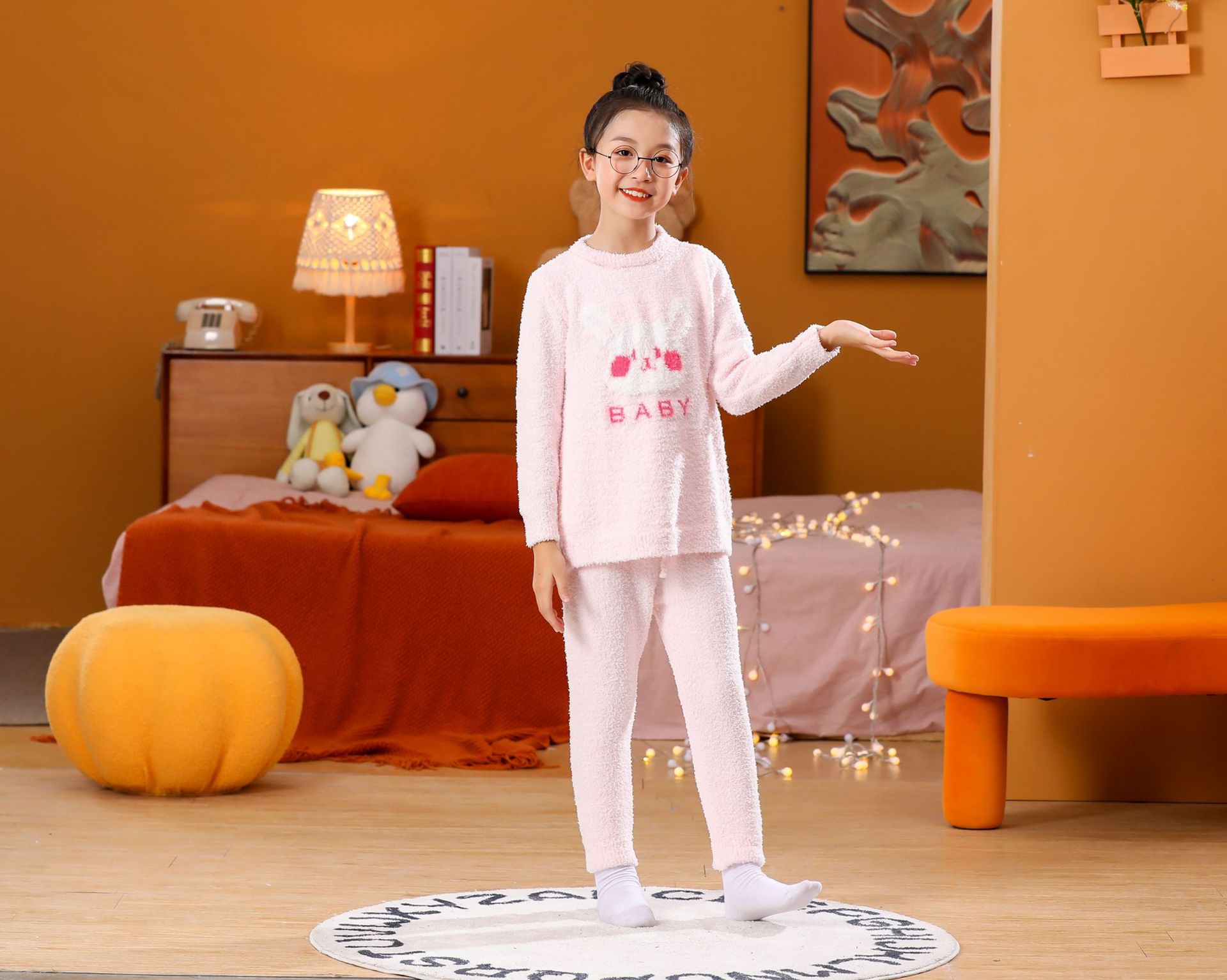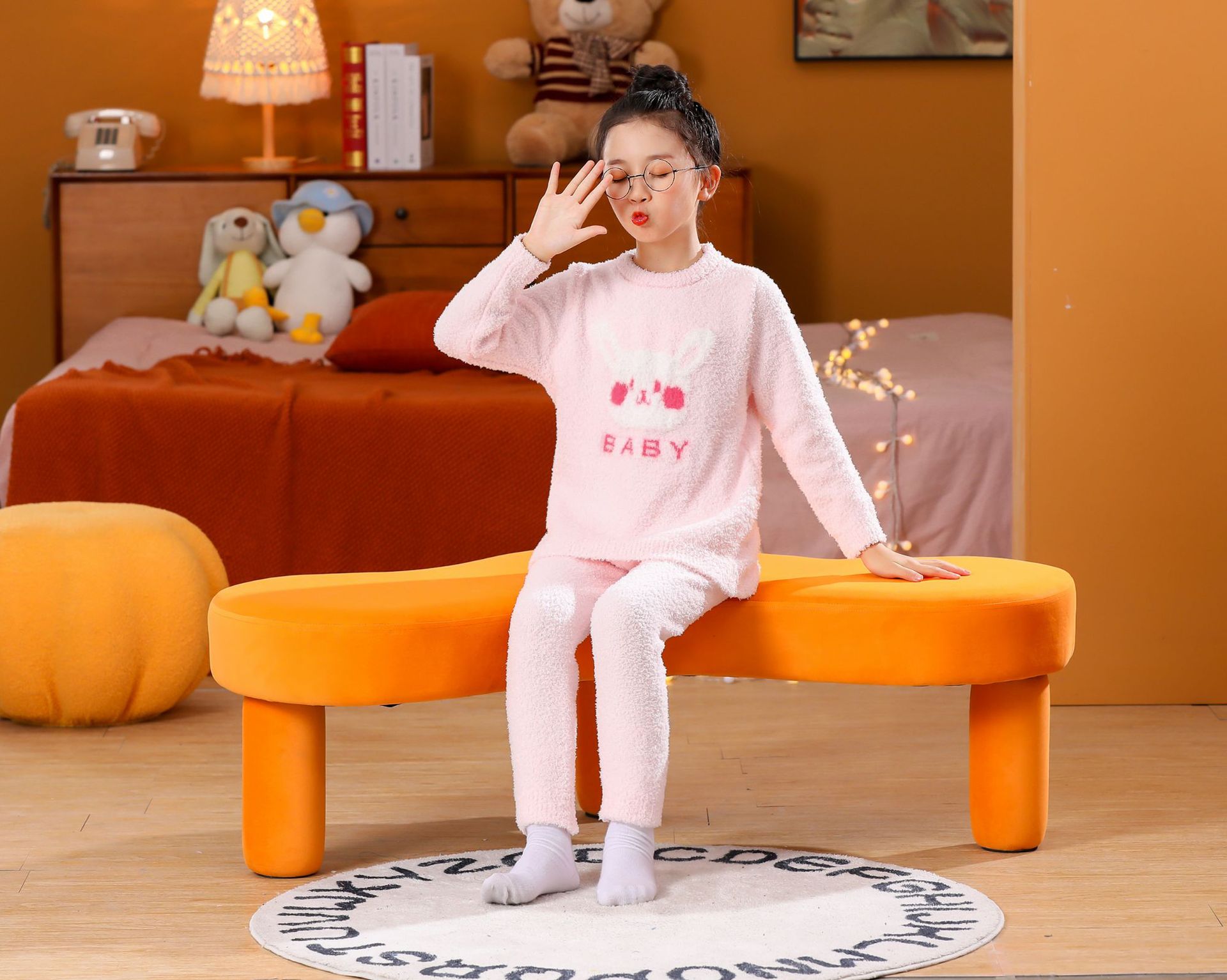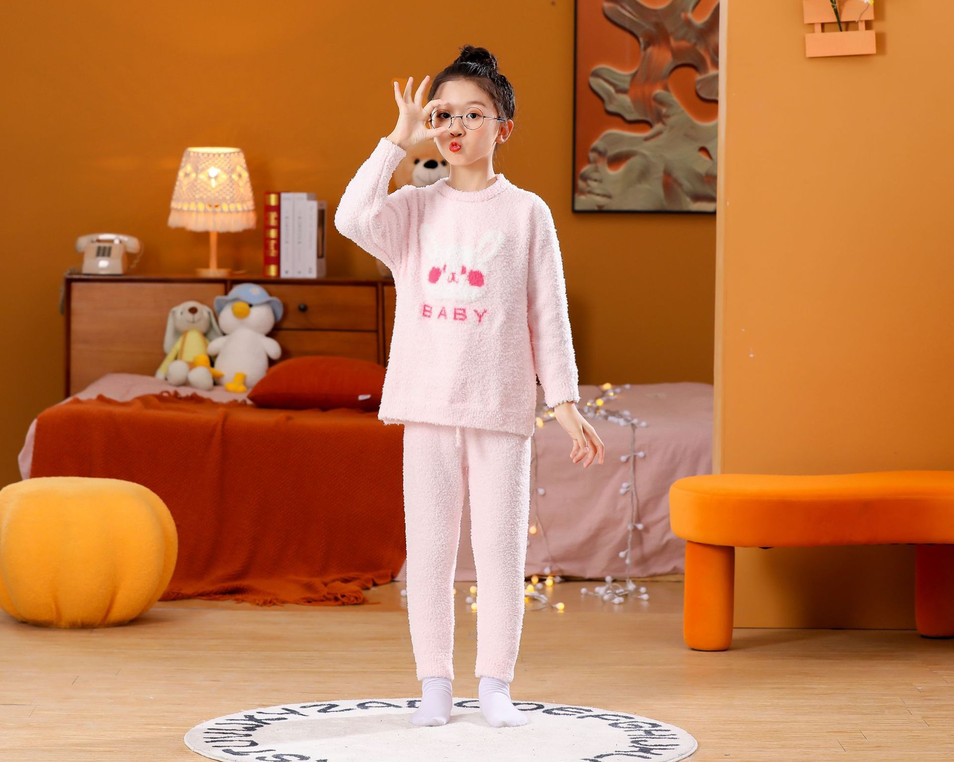 가을과 겨울 산호 양털 핑크 잠옷 긴팔 홈웨어 여성의 귀여운 토끼 따뜻한 반 벨벳 세트스토어 가기
