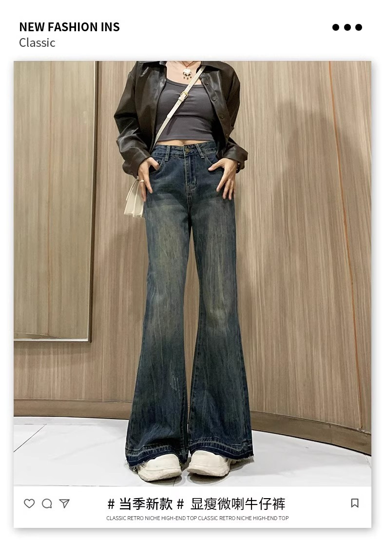 2026년 봄 여성복 신상품, 작은 키 여성을 위한 약간의 플레어 진, 루즈핏 아메리칸 스타일, 다리가 잘록해지지 않는 플레어 팬츠, 봄과 가을용스토어 가기