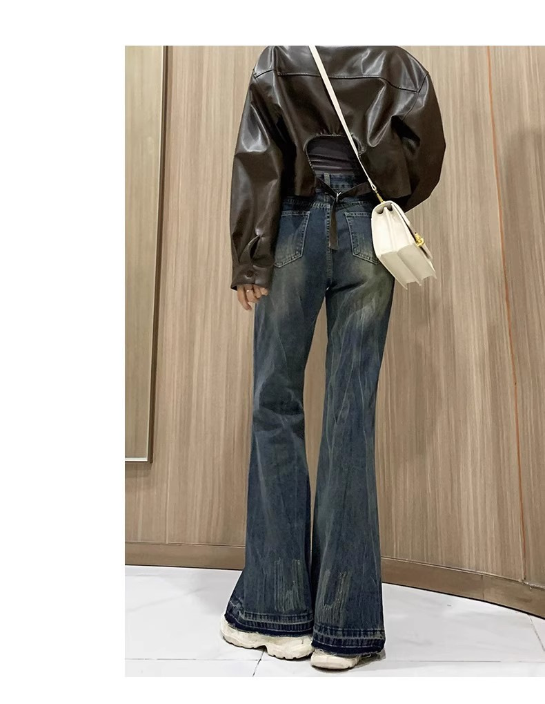 2026년 봄 여성복 신상품, 작은 키 여성을 위한 약간의 플레어 진, 루즈핏 아메리칸 스타일, 다리가 잘록해지지 않는 플레어 팬츠, 봄과 가을용