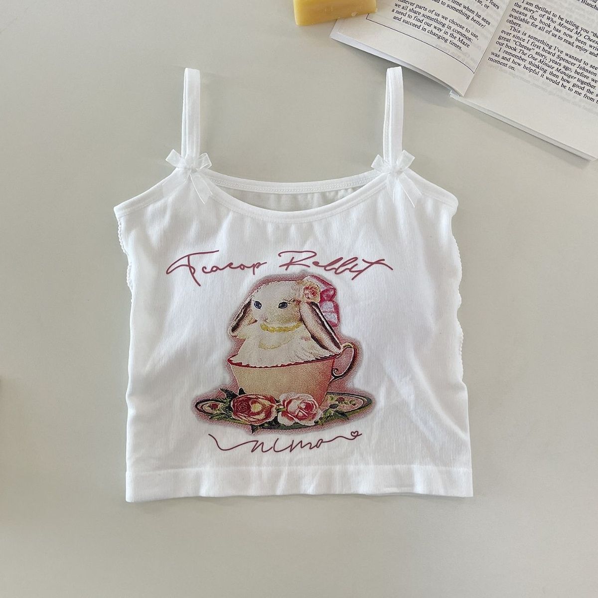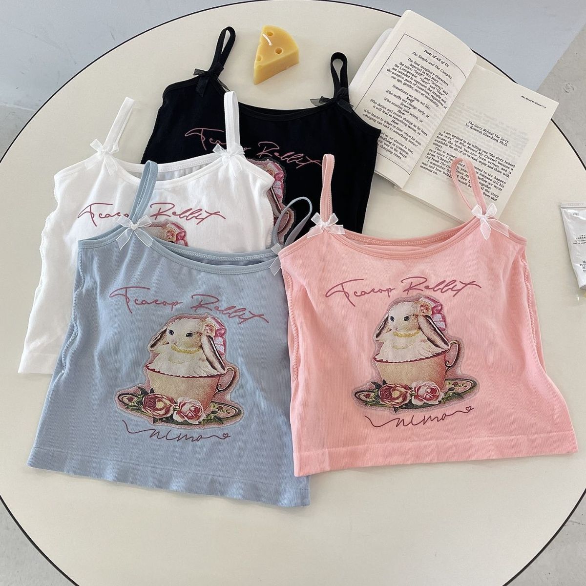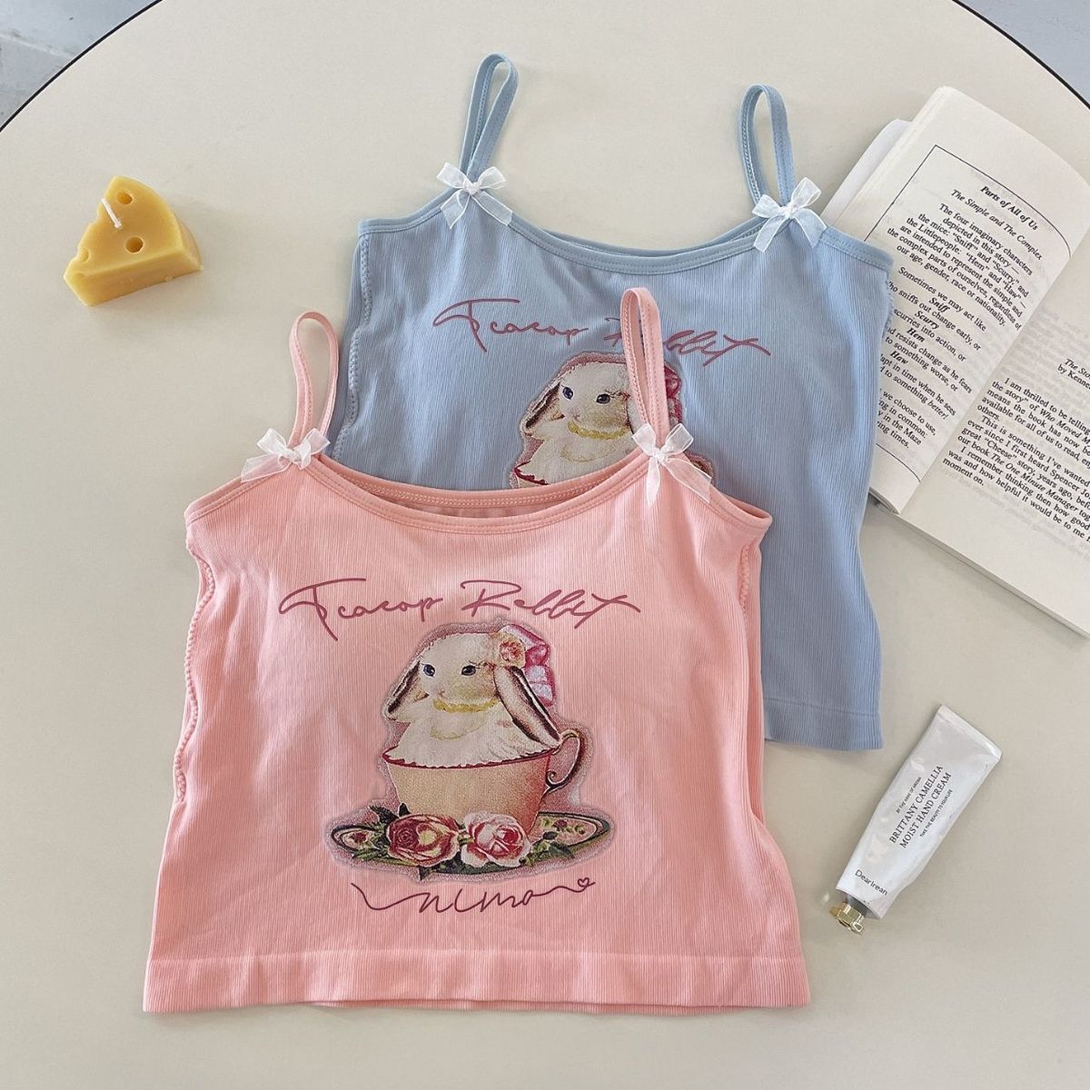 새로운 인쇄 활 아름다운 뒤 민소매 섹시한 만화 Rimless Camisole Vest 여성의베이스 아우터 탑스토어 가기