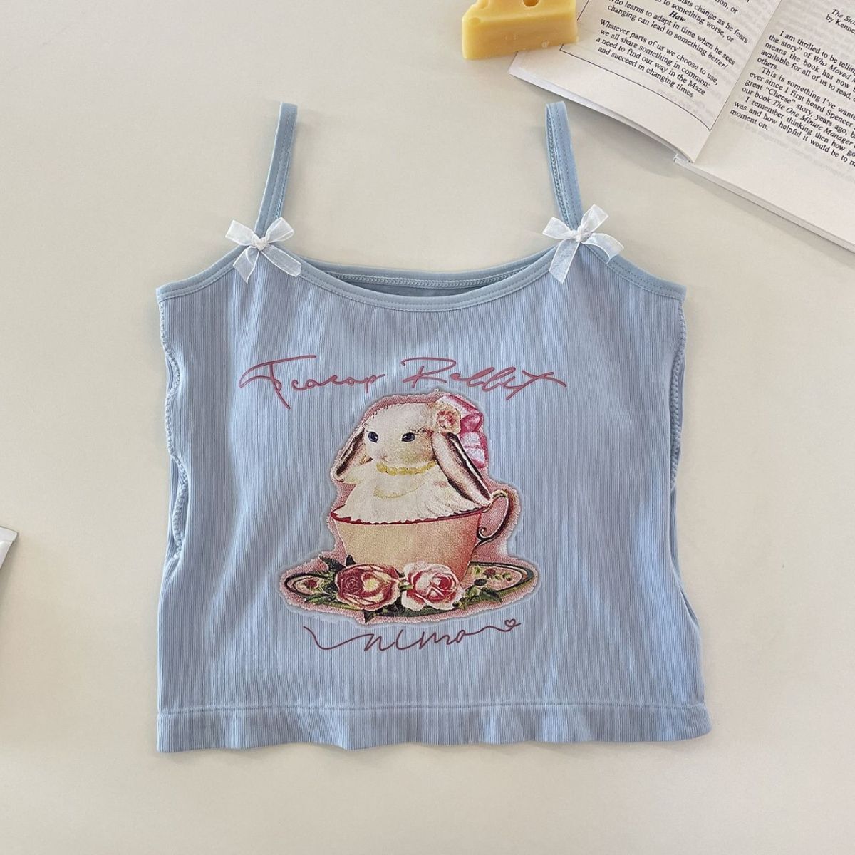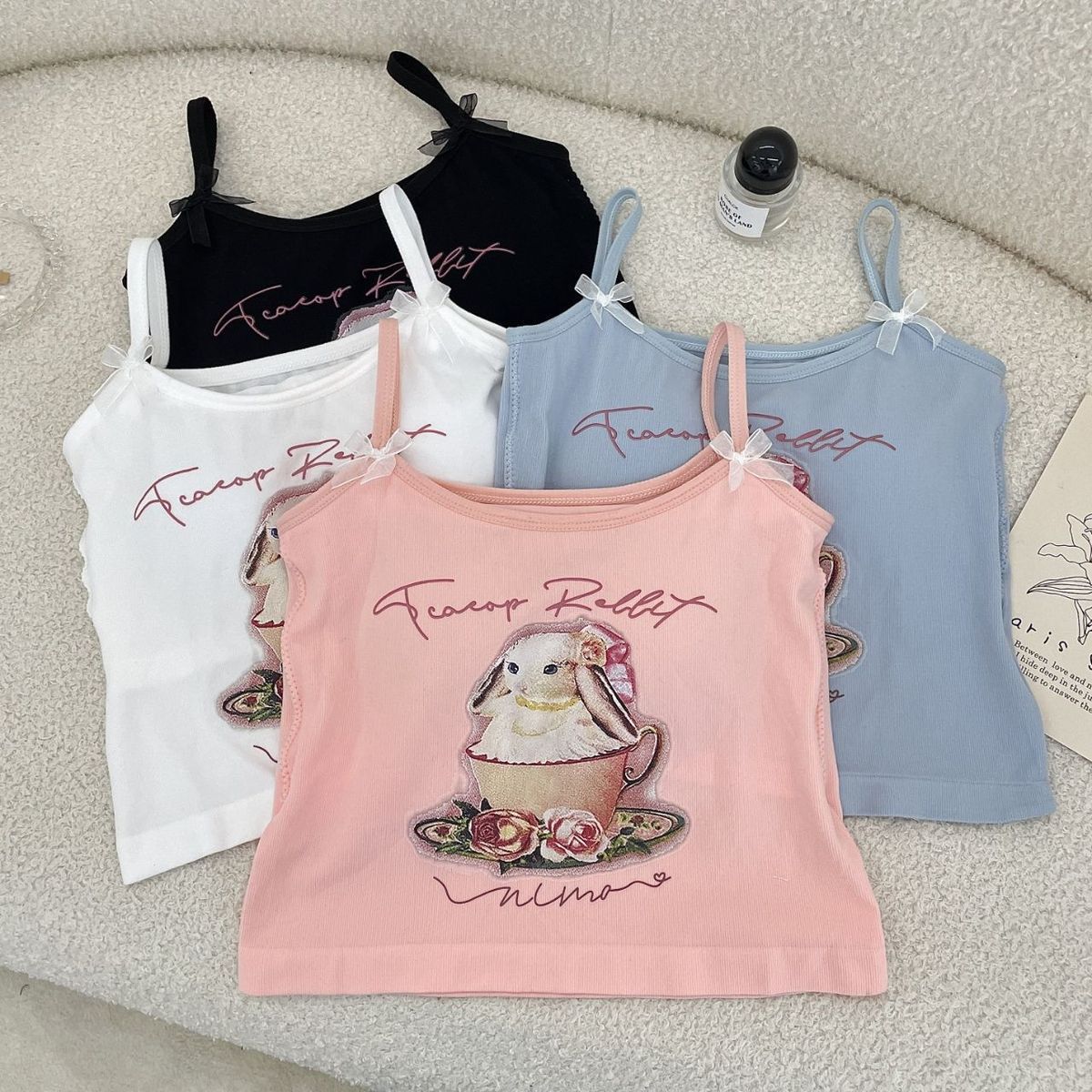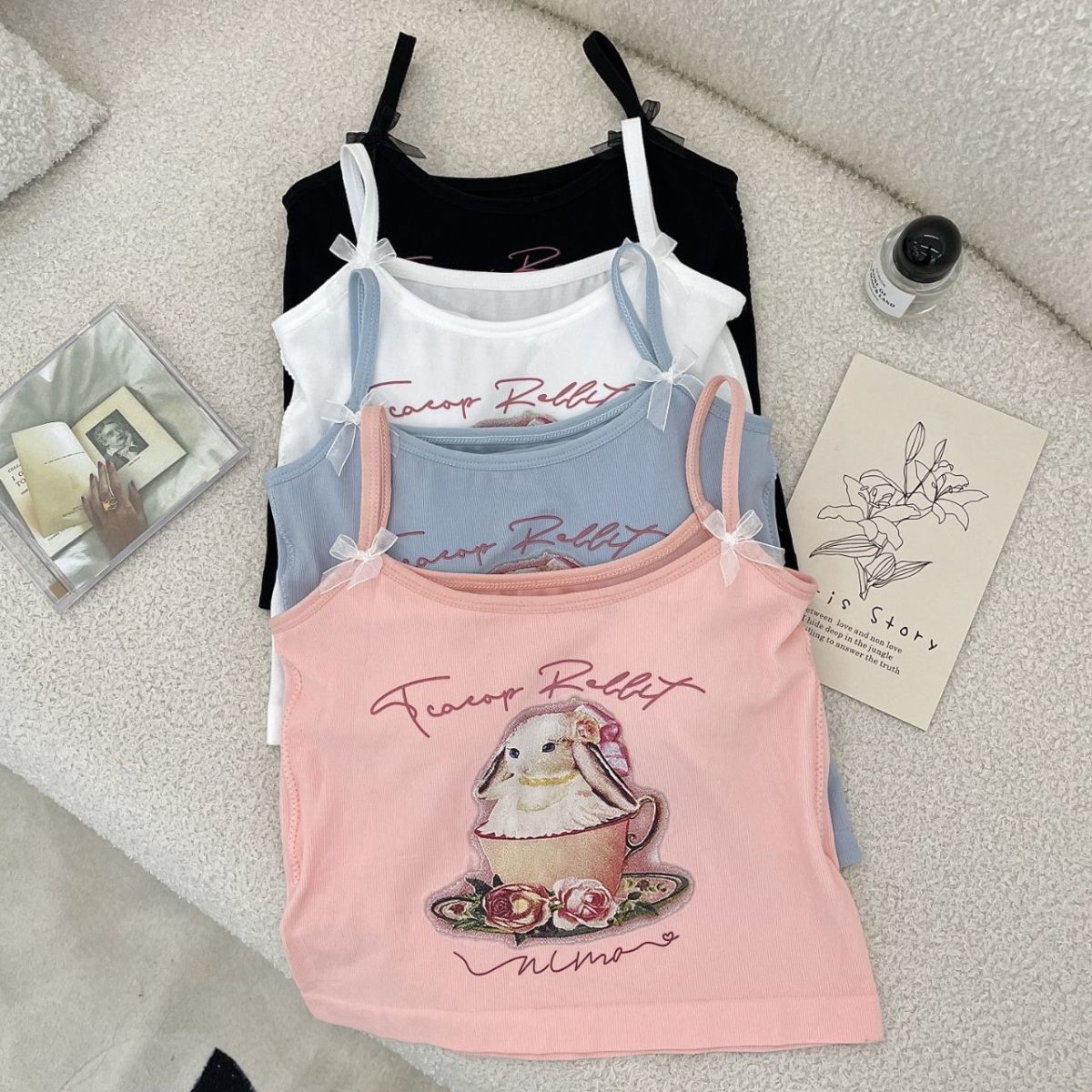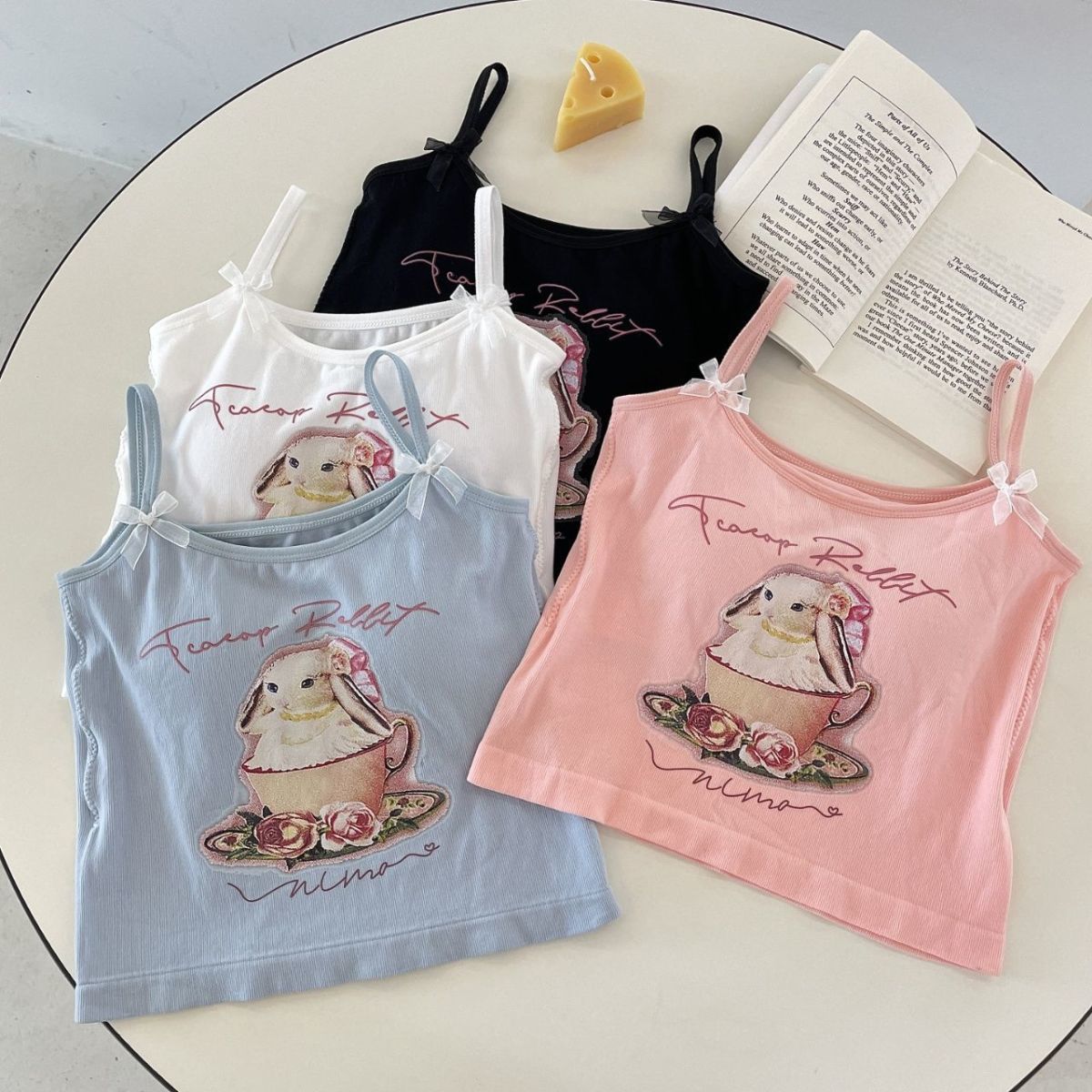 새로운 인쇄 활 아름다운 뒤 민소매 섹시한 만화 Rimless Camisole Vest 여성의베이스 아우터 탑스토어 가기