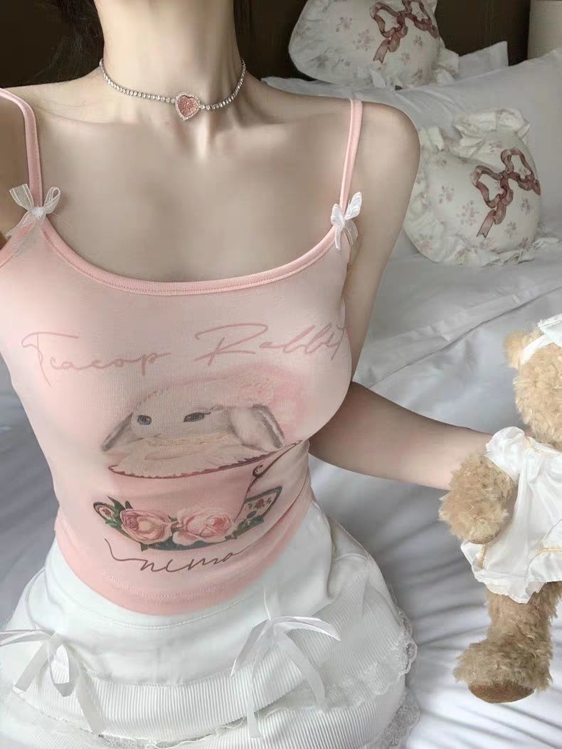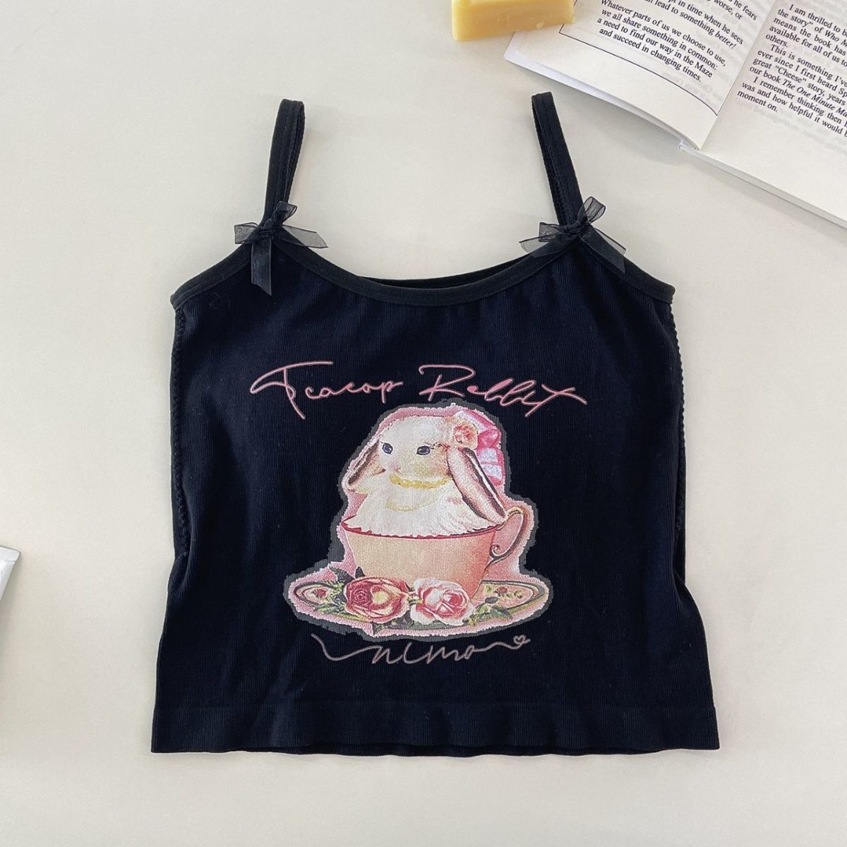 새로운 인쇄 활 아름다운 뒤 민소매 섹시한 만화 Rimless Camisole Vest 여성의베이스 아우터 탑
