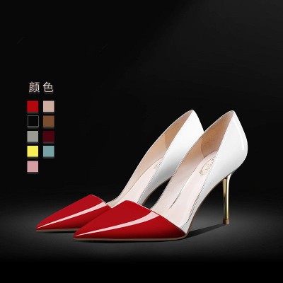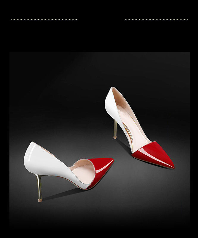 크기 32-45 싱글 소녀 컬러 블록 뾰족한 하이힐 얕은 입 2024 새로운 사계절 우아한 얇은 뒤꿈치 신발 여성용 샌들스토어 가기