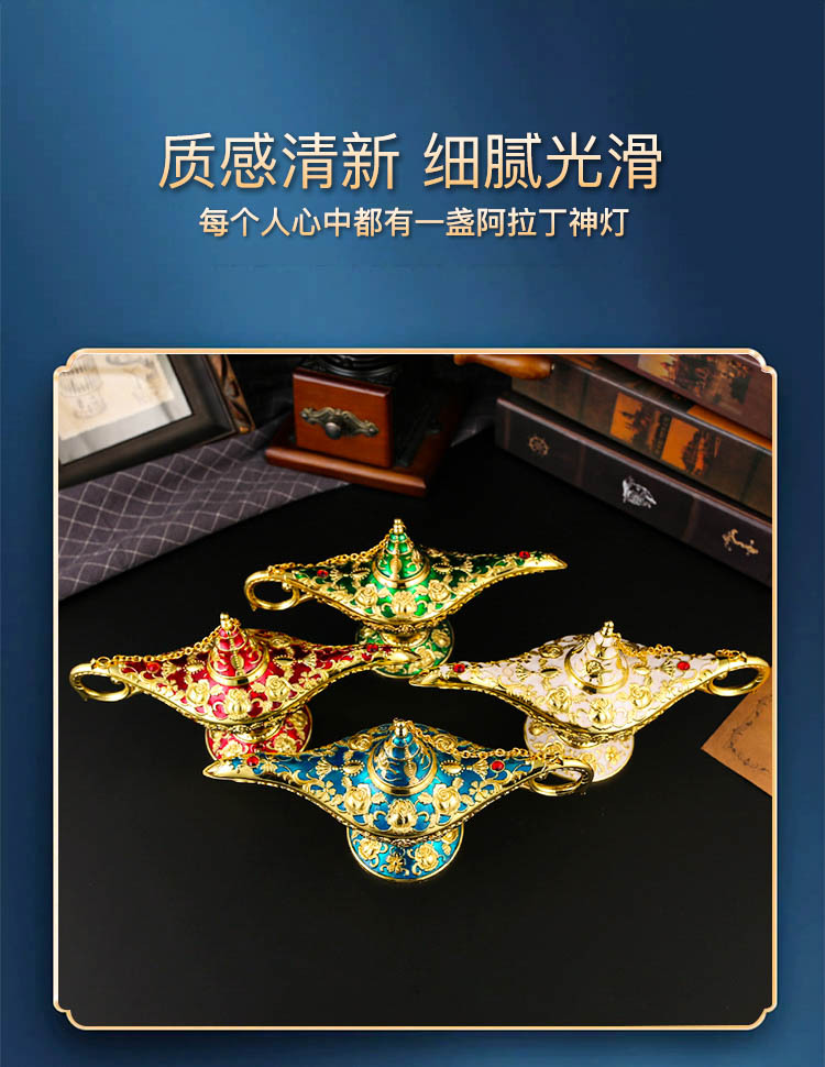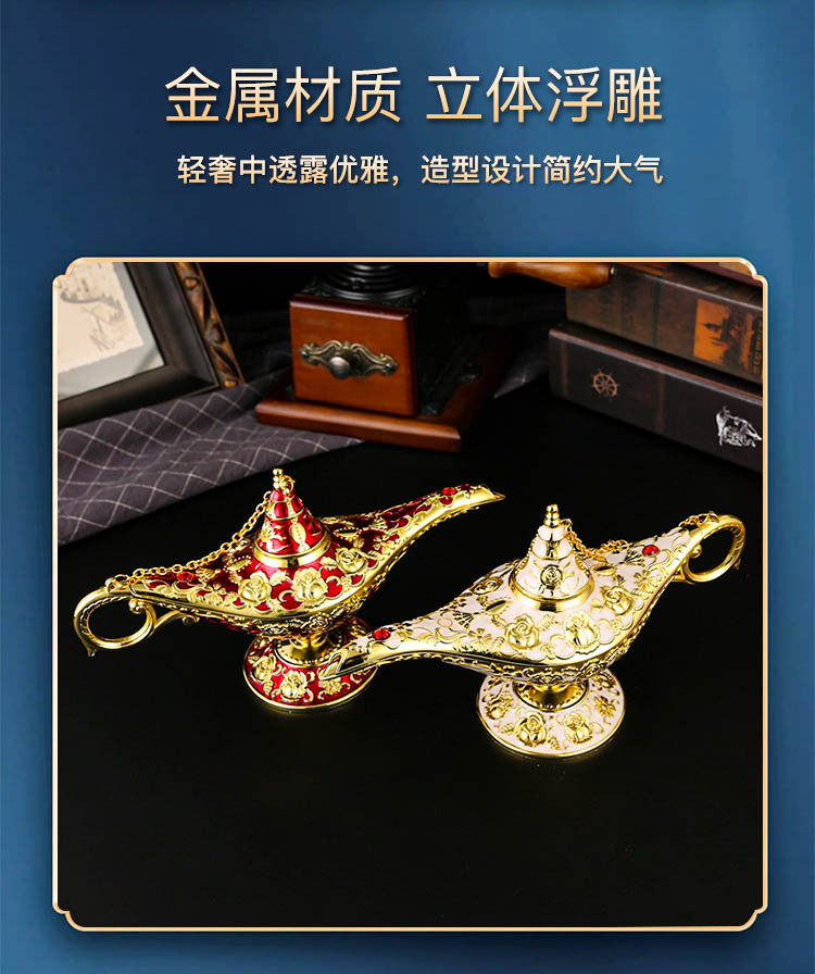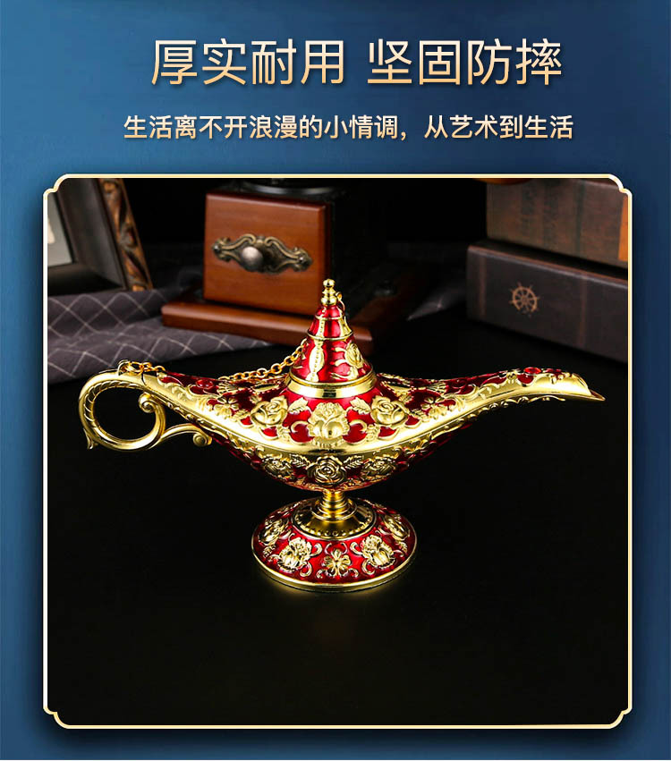 가벼운 럭셔리 클래식 스타일 알라딘 신성한 램프 장식품 기질 복고풍 패턴 유럽식 소원 램프 침실 장식 공예스토어 가기