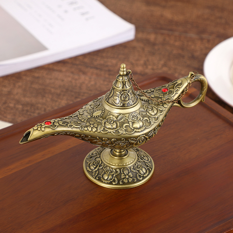 가벼운 럭셔리 클래식 스타일 알라딘 신성한 램프 장식품 기질 복고풍 패턴 유럽식 소원 램프 침실 장식 공예